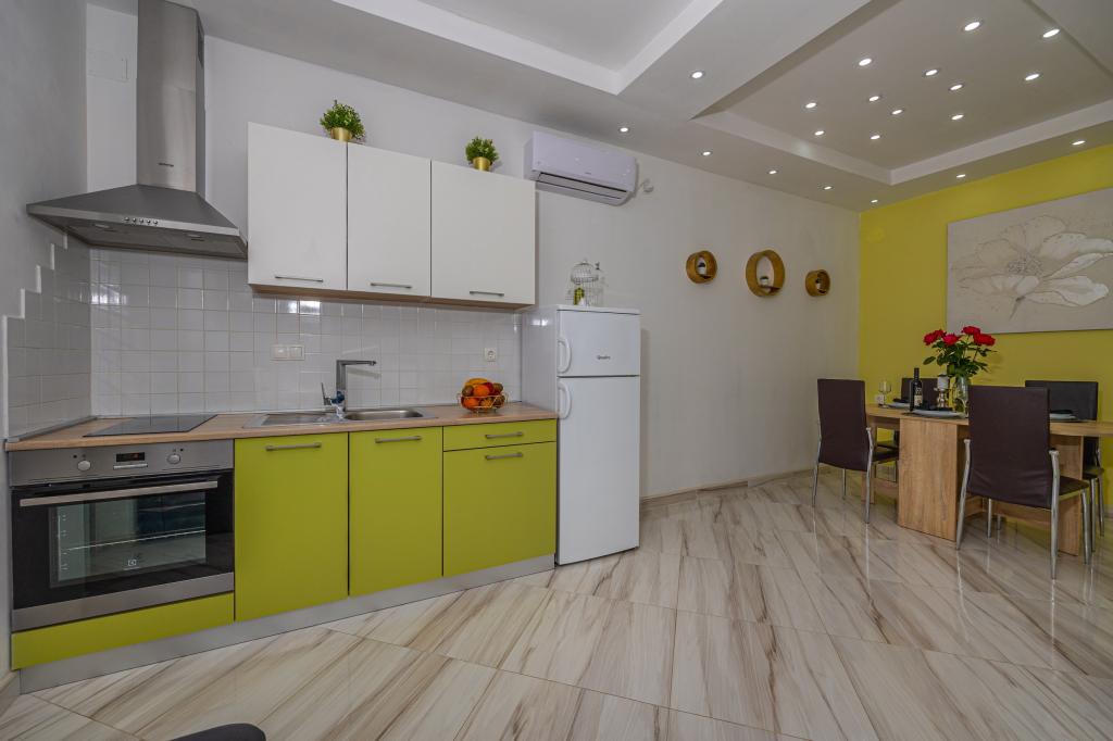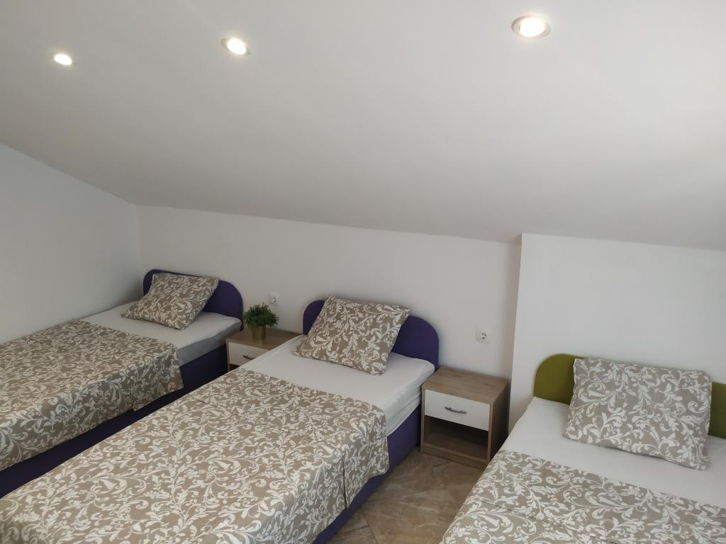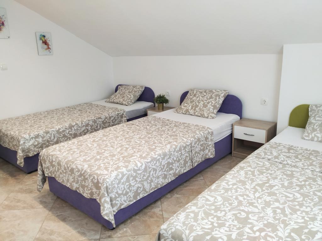 Rodinný dům s apartmány se nachází v Dramalj, klidné části riviéry Crikvenica, pouhých 400 metrů od promenády u moře, která spojuje Dramalj s Crikvenicí. Apartmány A2 + 2 se skládají z vybavené kuchyně s jídelním koutem, koupelny, 2 ložnic, jedné s manželskou postelí a druhé s postelí pro 2 osoby a balkonu s výhledem na moře. Apartmány A3 se skládají z vybavené kuchyně s jídelním koutem, koupelny, 1 ložnice s manželskou postelí a samostatným lůžkem a balkonu s výhledem na moře. Apartmán A5 se skládá z vybavené kuchyně s obývacím pokojem, 2 ložnic, jedné s manželskou postelí a druhé se 3 samostatnými postelemi. K bytu náleží prostorná terasa 20m2 s přímým výhledem na moře. Všechny apartmány jsou vybaveny klimatizací, TV a Wi-Fi. Vedle domu je soukromé parkoviště pro hosty a ve dvoře gril. .