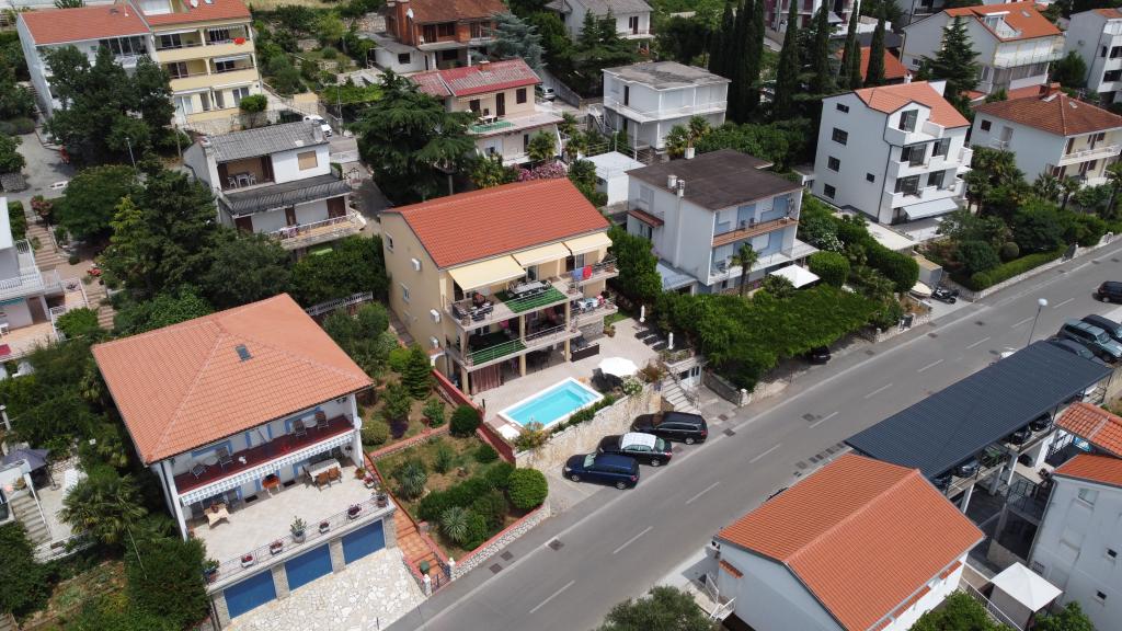 Dům s moderními a dobře vybavenými apartmány se nachází ve druhé řadě od moře, v blízkosti restaurace, trhu a pekárny. Zařízení má prostornou terasu s bazénem, lehátky a venkovním grilem. Před domem je parkoviště pro hosty. V přízemí se nachází studio A1 (ID:45200) a apartmán A2 (ID:45382) se dvěma ložnicemi, dvěma koupelnami a prostorným obývacím pokojem s kuchyní. V 1. patře jsou apartmány A4 (ID:45381), A5 (ID:45380) a A6 (ID:45235) s výhledem na moře a v posledním patře je podkrovní apartmán A7 (ID:45234), který poskytuje mimořádný komfort.