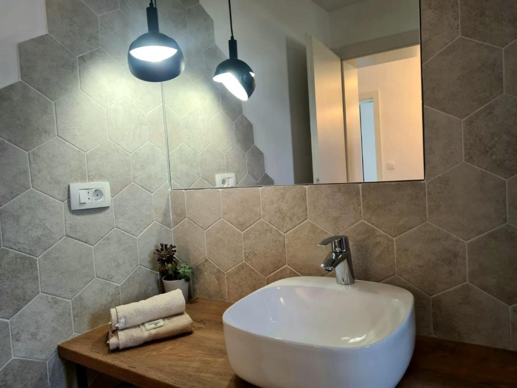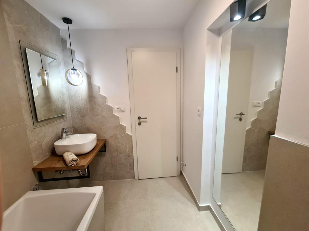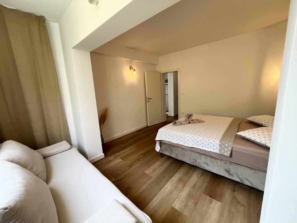 Krásný, čistý a příjemný apartmán, se 2 ložnicemi, jak bylo avizováno. Vchod byl ze zahrady, kam se dalo přijet autem, pár schodů rovnou na tarasu. Parkování téměř u apartmánu. Terasa moc pěkná, akorát velká, paddleboard se krásně vešel. Ráno tam svítilo slunce, odpoledne příjemný stín. Postele v obou ložnicích velmi příjemné, čisté. Kuchyň také čistá, myčka funkční a čistá. Nádobí čisté, akorát díky využívání myčky ho bylo málo, bylo by třeba doplnit. Koupelná krásná, prostorná a čistá. Pláž cca 5 minut chůze od apartmánu, málo lidí, voda čistá, malé oblázky, bez ježků, dalo se i bez bot. Kousek dál další 2 pláže (Soline, Vodice), kde bylo trochu více lidí. Restaurace i obchod cca 5 minut chůze od apartmánu. Hostitelé milí a příjemní. Moc se nám v Drašnici a v apartmánu Gabriela líbilo, může určitě doporučit!