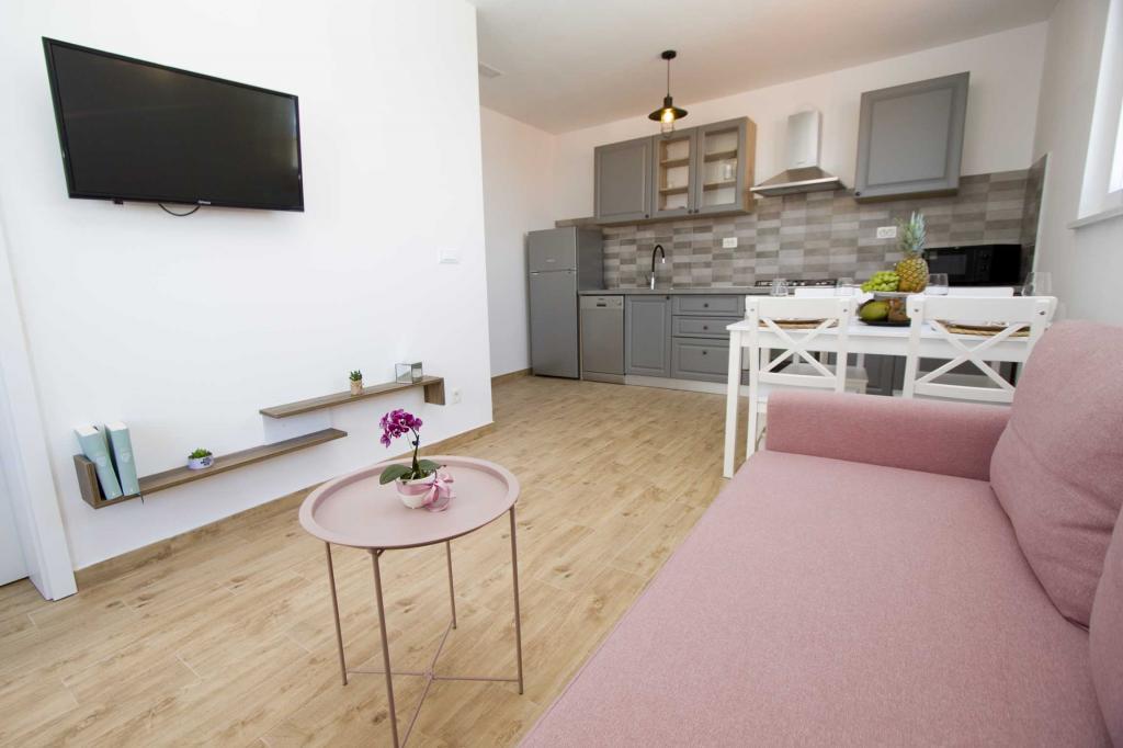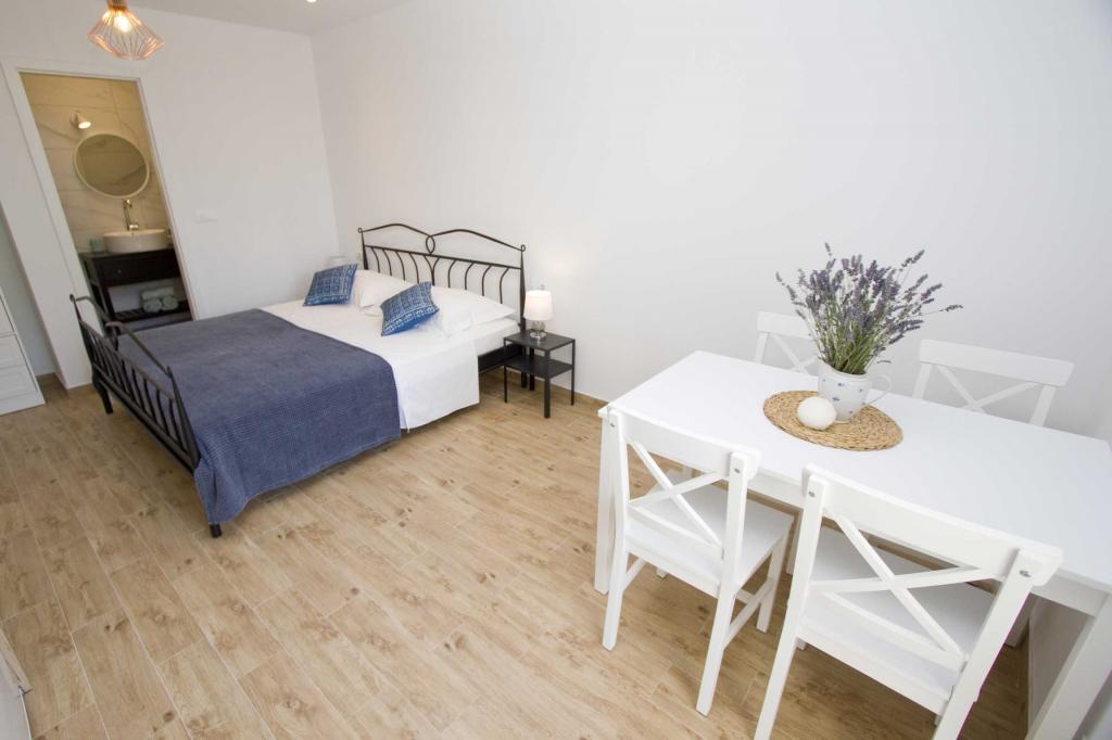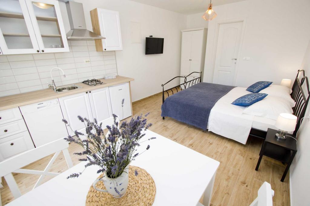 Pobytová taxa je v ceně.Krásný apartmán.Moderně zařízený, čistý, voňavý.Zařízený vším co na dovolené potřebujete. Z terasy kouzelný výhled na moře a přístav. Majitelé, vstřícní , sympatičtí vždy nápomocní.