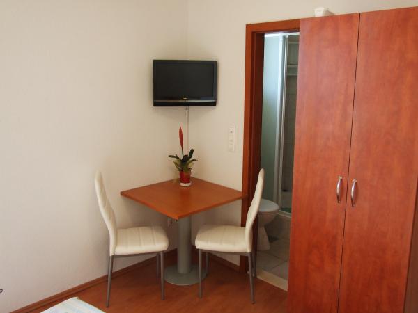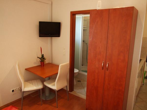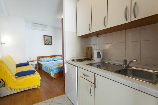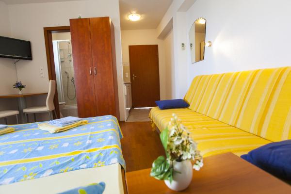 Pobytová taxa je v ceně.Cena zahrnuje: daň, parkování, klimatizaci, WiFi, TV. Minimální počet nocí je 7. Studiové apartmány jsou určeny výhradně pro 2 osoby.
