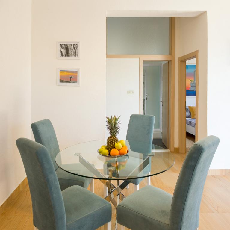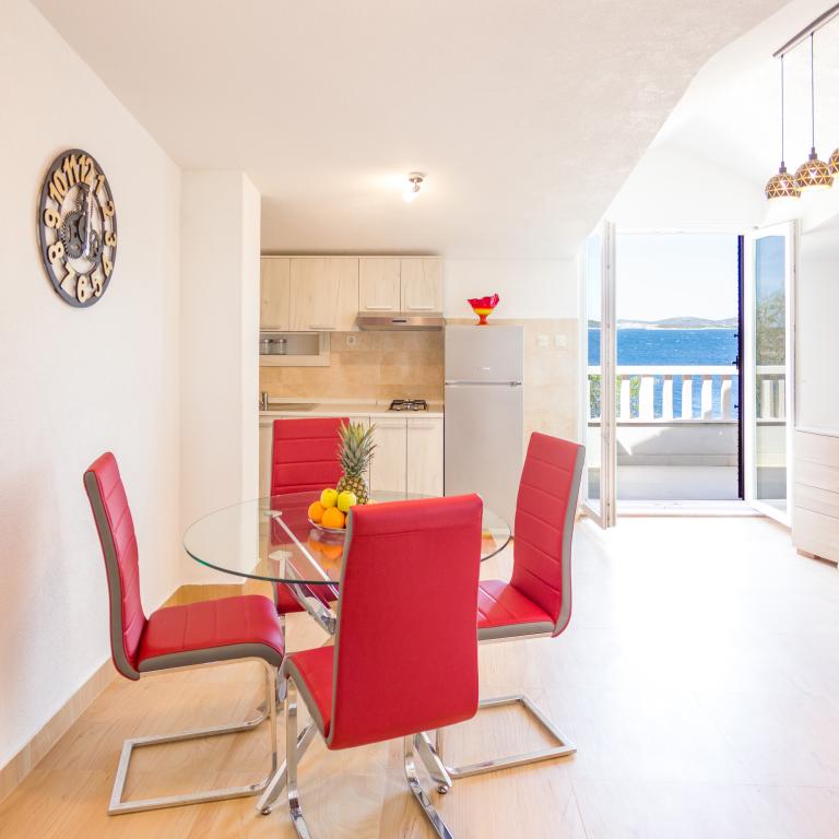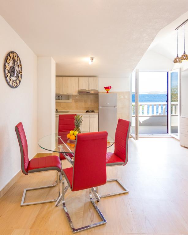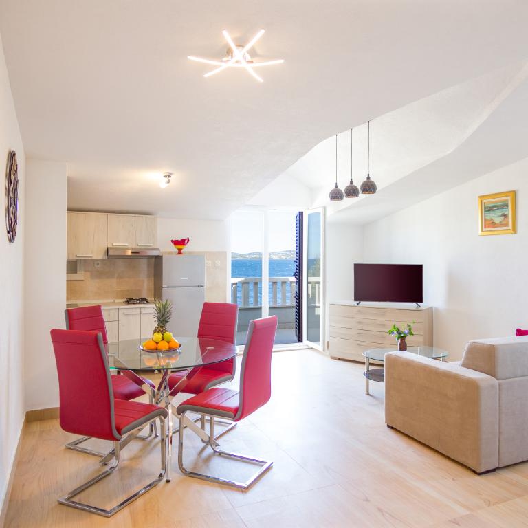 Apartmány Val a Sol se nacházejí na ostrově Drvenik Mali, v zátoce Mala Rina, v první řadě k moři, 70 m od pobřeží. Apartmány na ostrově Drvenik Mali se skládají z vybavené kuchyně, jídelny, obývacího pokoje s TV a rozkládací pohovkou, ložnice s ventilátorem, terasy s krásným výhledem a koupelny s fénem. Oba apartmány mají výhled na moře. Možnost pronájmu celého patra domu. Apartmány Val a Sol, Drvenik Mali, nabízejí bezplatné parkování, gril a bezplatný internet. Na ostrově Drvenik Mali se nachází obchod s omezeným obsahem, restaurace a kavárna na pláži. Proto důrazně doporučujeme, abyste si s sebou přinesli jídlo, pití a další nezbytnosti.