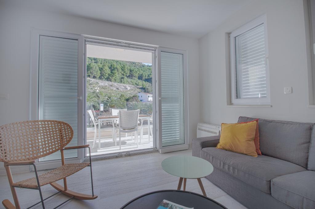 Moderně zařízené apartmány cca 70 metrů od moře, v blízkosti veškeré důležité občanské vybavenosti. Nacházejí se ve druhé řadě od moře v klidné ulici. Hlavní pláž je vzdálená minutu chůze, kde jsou restaurace a obchody. Trajekt na Hvar odplouvá z Donje Vale a jeho molo je od apartmánu vzdálené cca 200 metrů.