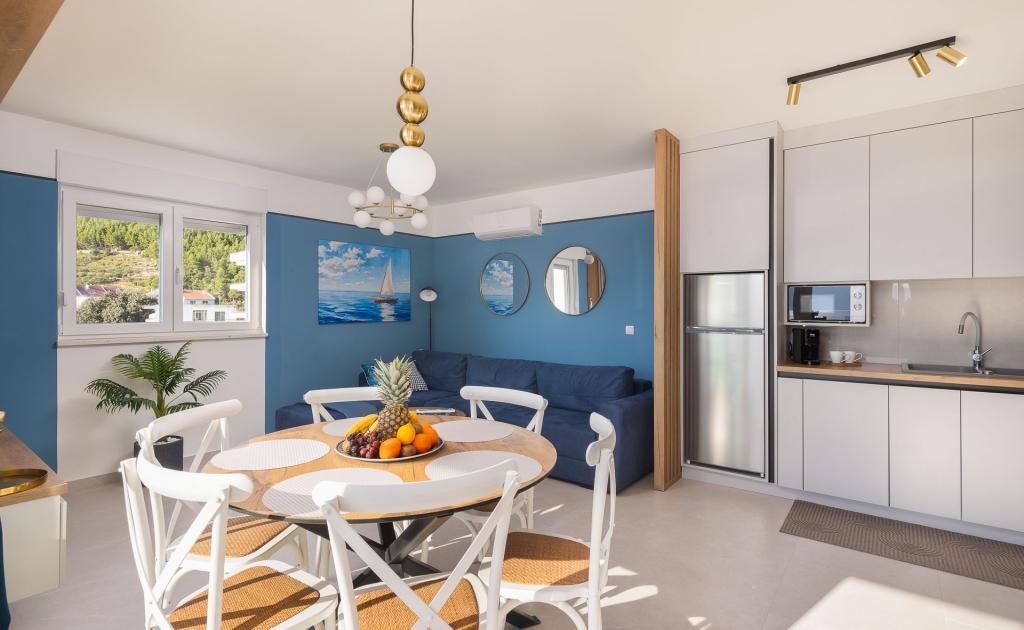 Apartmán Zina se nachází pouhých 150 metrů od pláže v Drveniku a nabízí moderní a pohodlné ubytování s krásným výhledem na moře. Je ideální pro rodiny nebo malé skupiny, které hledají relaxační dovolenou u moře. Apartmán má dvě ložnice, jednu koupelnu s další toaletou a obývací pokoj s rozkládací pohovkou. Hosté si mohou užívat prostorný balkon s výhledem na moře a také vybavení, jako je pračka a soukromé garážové parkovací místo. Náš personál je vám k dispozici po celou dobu vašeho pobytu, aby vám dovolená byla příjemná a bezstarostná.