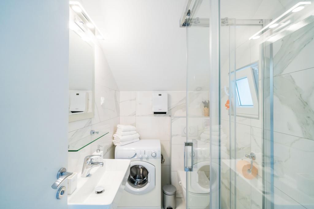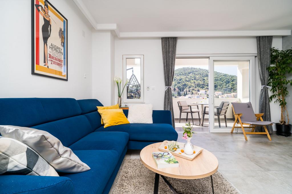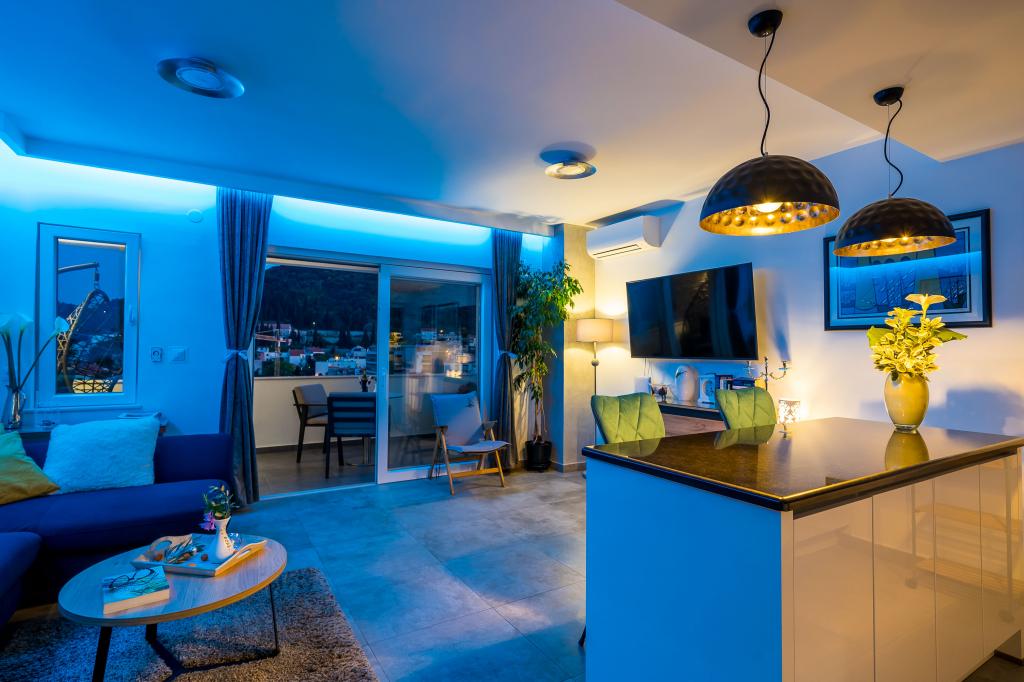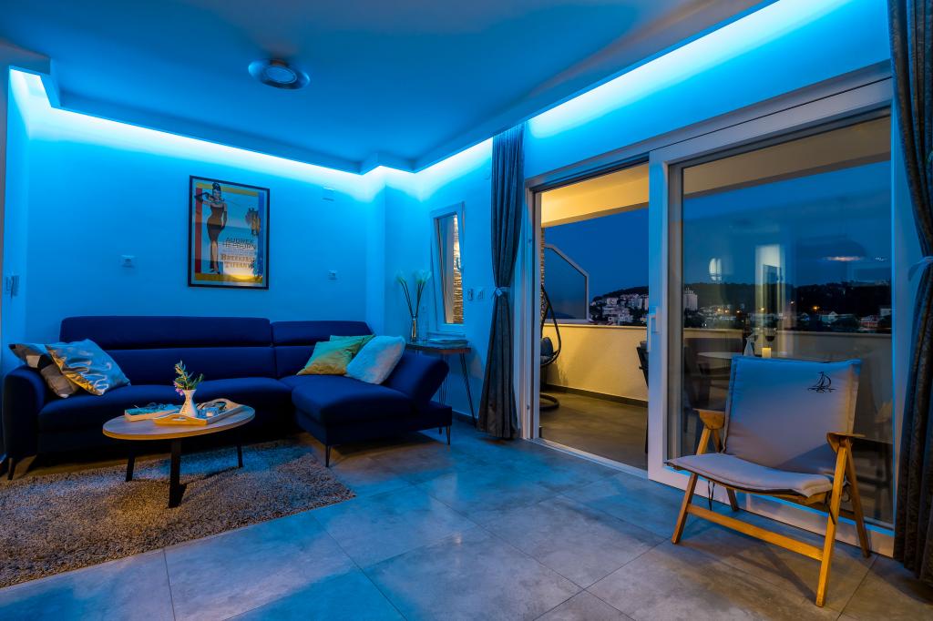 V první řadě, abychom Marijaně ještě jednou poděkovali za její pohostinnost a laskavost, apartmán nabízí vše, co potřebujete, abyste se na dovolené cítili extra. Od klimatizace v obývacím pokoji a v ložnici, pračka, kávovar, TV nabízejí různé v různých jazycích. Tento byt právem patří k Luxus Apartments. Pohled z balkonu se táhne od Lapadu k moři. Z bytu na pláž jsme potřebovali 5-6 minut, snadná procházka. Auto jsme nechali na parkovacím místě od apartmánu a během pobytu jsme ho již nepoužívali. Obchody, restaurace, autobusové nádraží se nachází několik minut od apartmánů. Jediná věc, která by někomu, kdo má problémy s koleny, mohla vadit, jsou Schody vedoucí na Promenádu a Plaza, osobně nás neobtěžovaly. Podívali jsme se na to jako na malé cvičení. Lapad se nám moc líbil a Apartmán ještě víc.