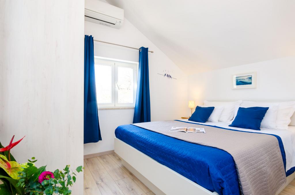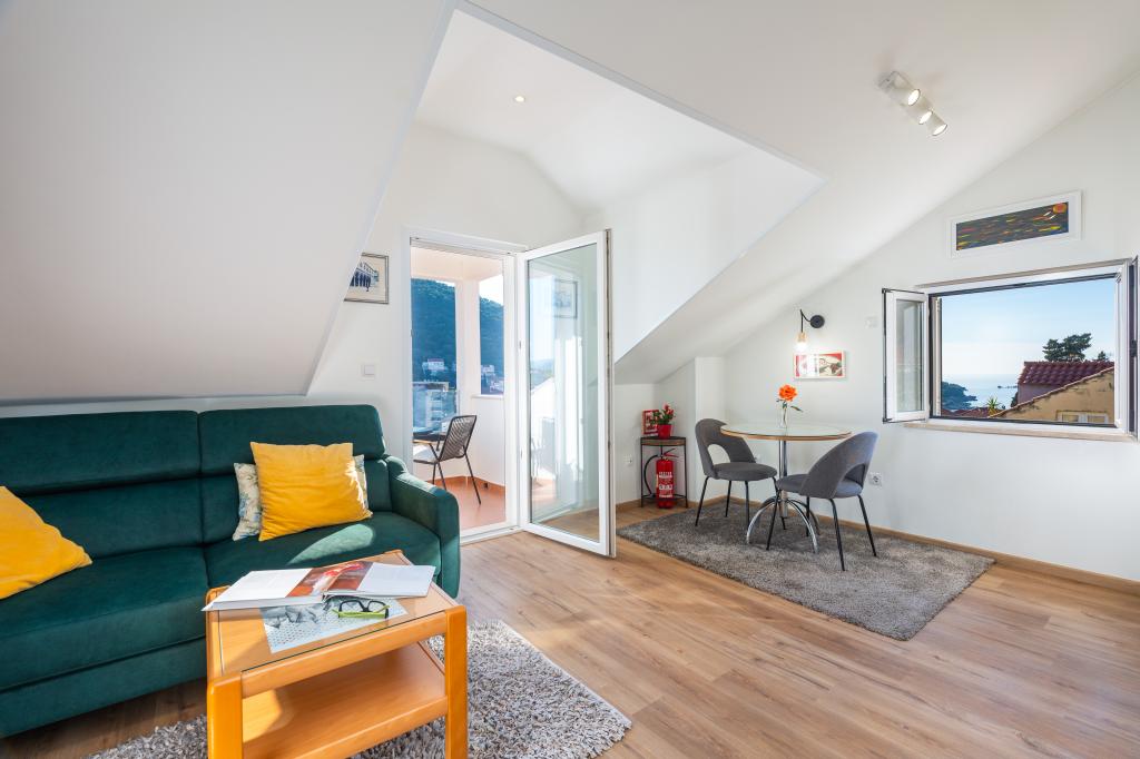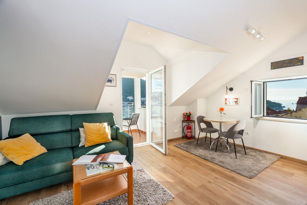 Moderní a komfortně zařízené apartmány na poloostrově Lapad v Dubrovníku. Nachází se v klidné oblasti s rodinnými domy jen pár minut pěšky přes promenádu na pláž. V blízkosti restaurací, kaváren, trhů, supermarketů a veřejné dopravy každých deset minut do historického centra města. Zařízení má dva apartmány, každý pro dvě osoby, s jednou ložnicí, obývacím pokojem, kuchyní, koupelnou a balkonem s výhledem na moře.