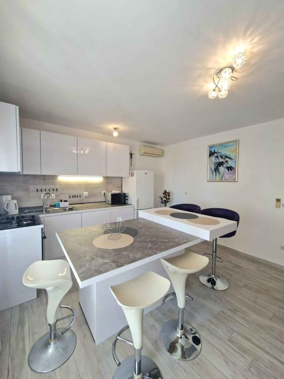 Apartmány Dizma poskytují úplnou relaxaci, jejich součástí je vyhřívaný bazén s protiproudem a hydromasáží se sprchami pro relaxaci, fitness místnost pro relaxaci, kulečníková místnost s mini-café barem, TV, SAT, DVD hudba pro relaxaci, šipky, aromatická finská a turecká sauna s chromoterapií, stejně jako gril s minikuchyňkou, stejně jako prostor pro socializaci. Hosté apartmánů dizma mohou používat pračku a sušičku, organizovat masáže těla a organizovat další výlety, použití jízdních kol... po dohodě s hostitelem.