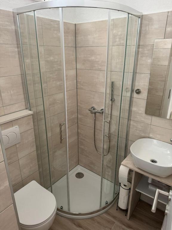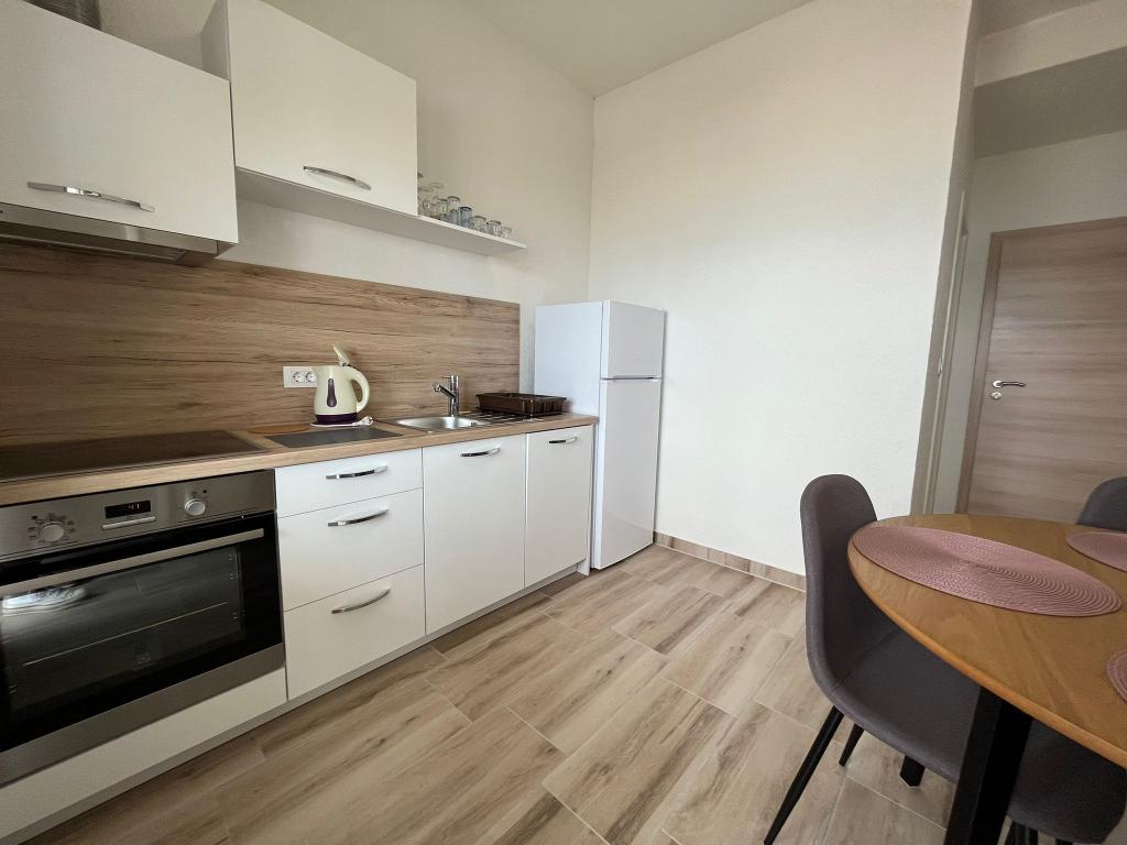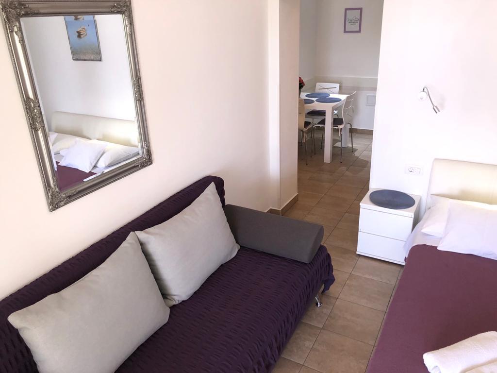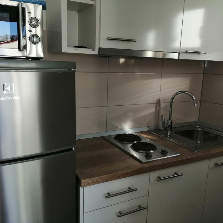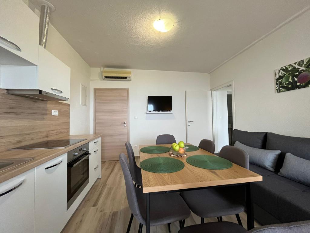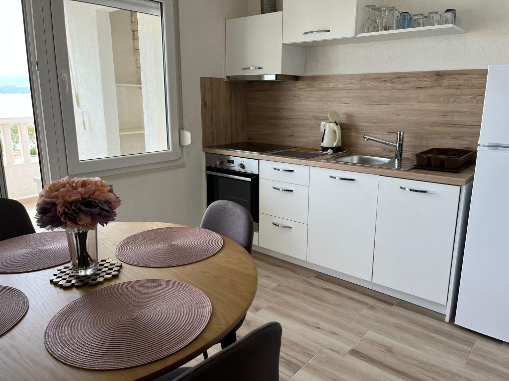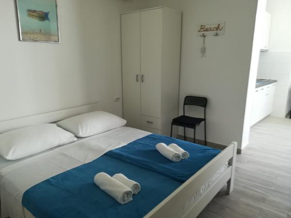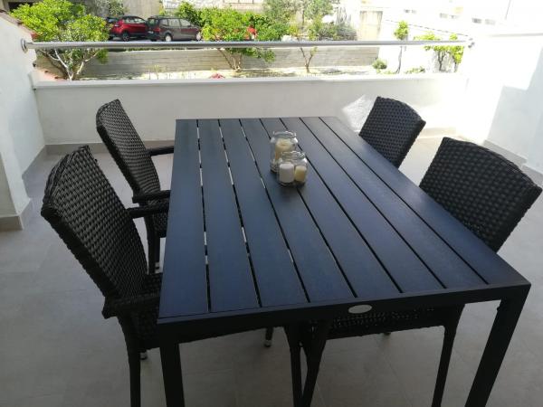 Skvělé místo pro rodiny a další. Budova s domáckou atmosférou, skvělí majitelé. K dispozici je čisté, útulné parkoviště. Samotný byt je velmi svěží, dobře vybavený a poskytuje velký komfort pro 4 osoby. Super velká terasa. Náš byt neměl výhled na moře a my jsme ho vybrali záměrně, protože to bylo velmi tiché a intimní a moře a pěkné písečné pláže jsou jen přes ulici (velmi blízko u uliček). Vřele doporučuji a děkuji Maria za krásný pobyt.