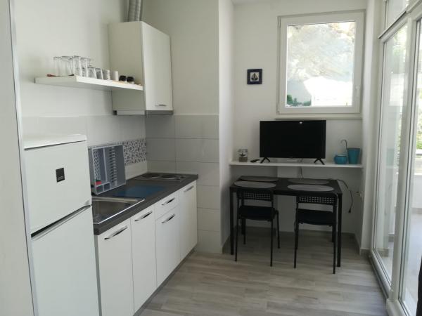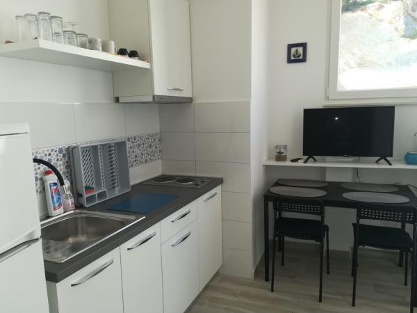 Velmi pěkní a přátelští hostitelé, zrekonstruované studio - s kuchyní, koupelnou a krásnou květinovou terasou, které zpříjemní večery a ranní snídaně. Vybavení bytu je nové a funkční. Z terasy je přímý výstup na pláže, cca 20 m. Nedaleko je obchod a několik restaurací. Parkování pod domem. Klidné okolí, 30 minut do centra Omiše pěšky. Jsme velmi rádi, že můžeme zůstat na tomto místě