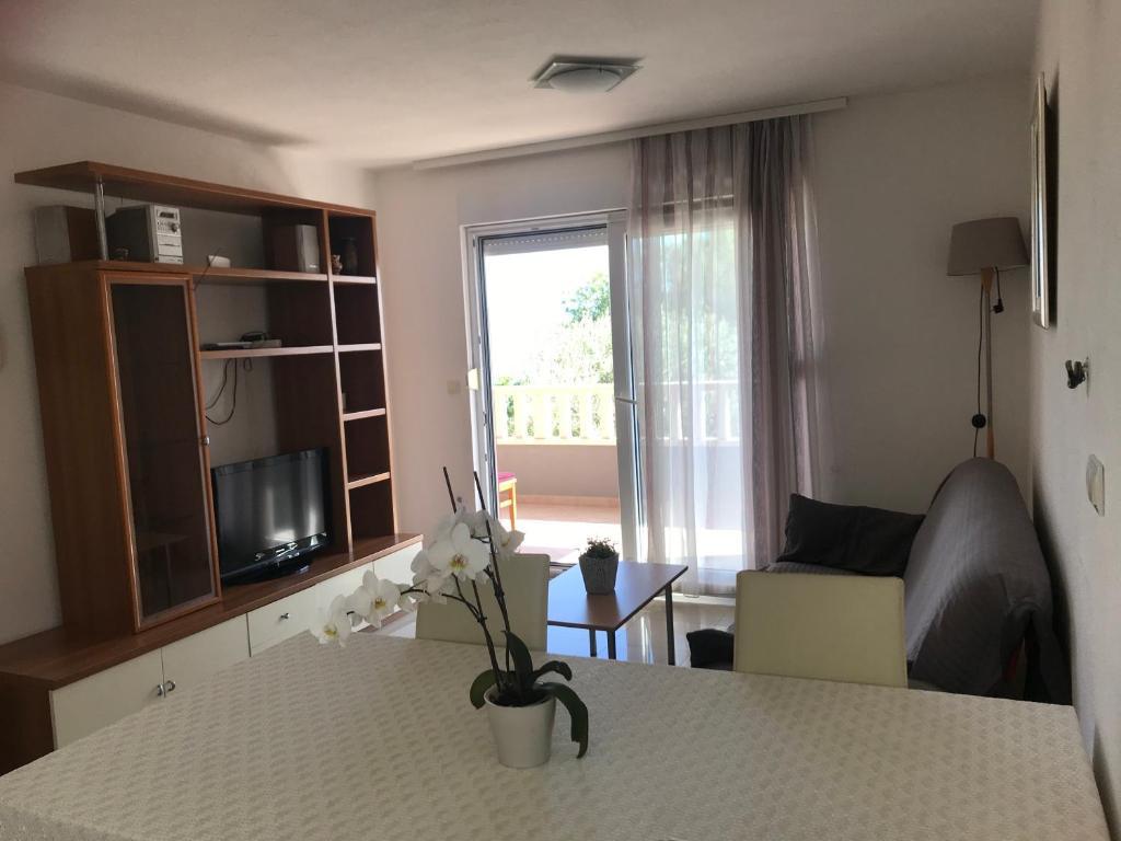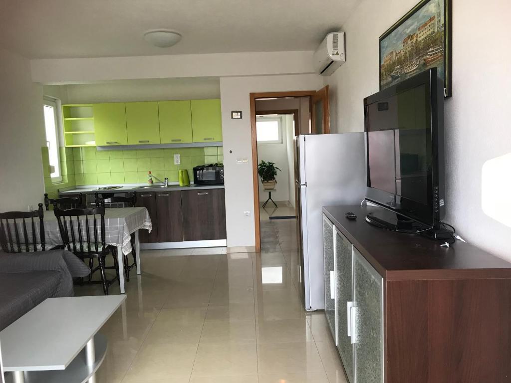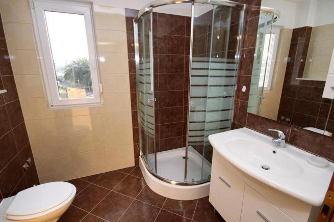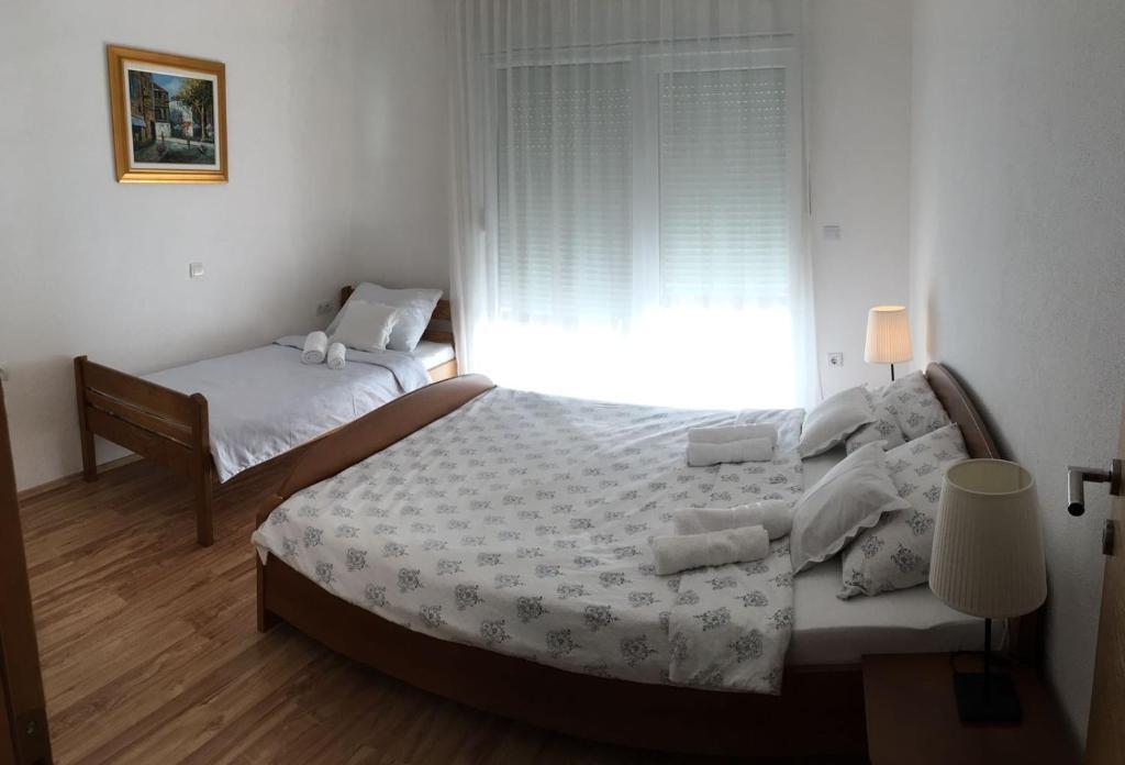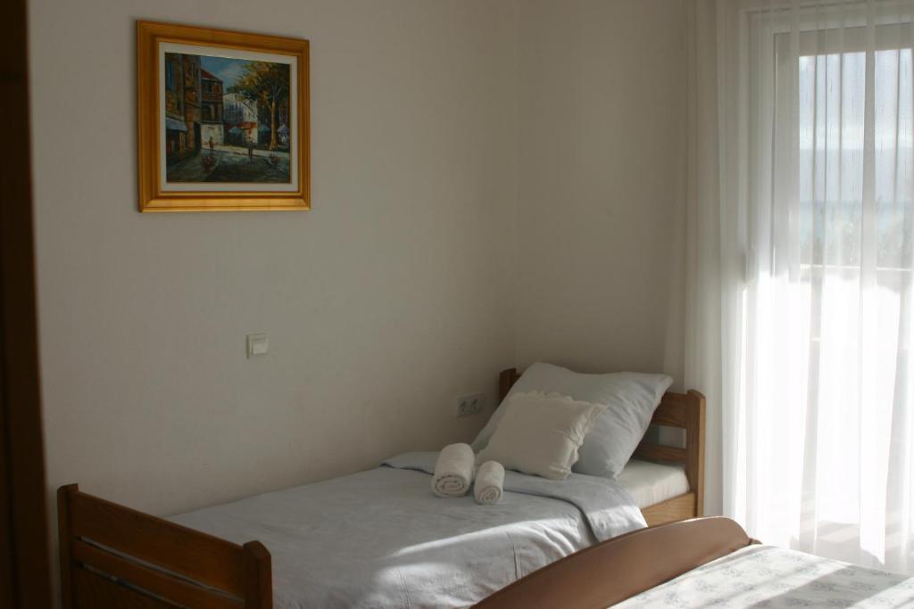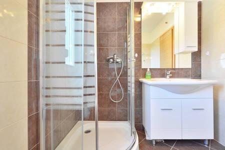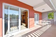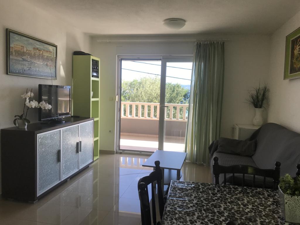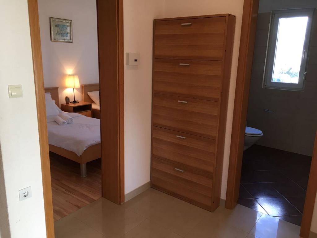 V domě jsou dva byty o velikosti 75m2. Každý apartmán má dvě ložnice, jeden pokoj má dvě lůžka a druhý tři lůžka. V prostorné kuchyni s obývacím pokojem je možnost ubytování pro dvě osoby na gauči. Na chodbě je koupelna s toaletou a toaletou. Oba apartmány mají prostorný balkon s výhledem na moře. V přízemí jsou garáže pro auta. Na pláž, která je 150 metrů od domu, je nutné přejít silnici. Na krátkou vzdálenost je na výběr mezi několika druhy pláží a hloubkou moře. Vhodné pro děti. Na pláži si kromě koupání a opalování můžete vybrat z různých doplňkových forem zábavy. Vzdálenost k stánku s chlebem je 50 metrů, obchody 200 metrů a v okolí několik typů restaurací.