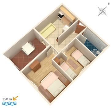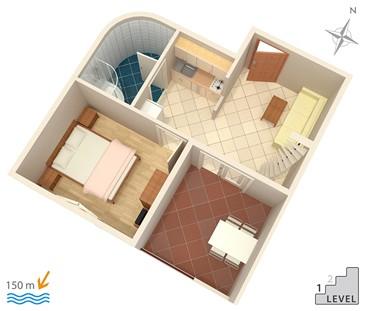 Dům v klidné slepé ulici bez provozu. Jsme 150 metrů od pláže. Pláž je písečná, s velkým hejnem, ideální pro děti. Do centra Omiše dojdete za 15 minut a Split je 25 km daleko.