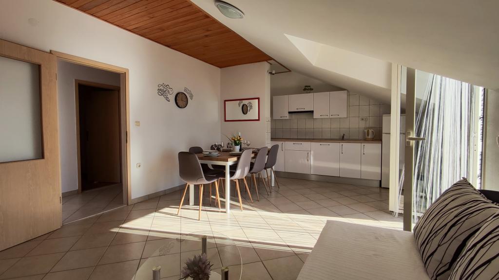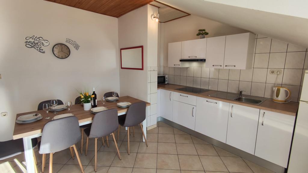 Měli jsme zde úžasný týden. Interiér bytu je zcela nový, kuchyně je plně vybavená. Absence mikrovlnné trouby je zanedbatelná. Pračka je úžasná, nikdy jsme nebyli na místě s pračkou. Teď víme, že je dobré to mít. Věčné panorama na snídani, večeři a rozhovory. Hostitelé jsou přátelští a ochotní, rozuměli jsme si, i když jsme nemluvili stejným jazykem. Moře je o 150 m níže, cesta zpět je trochu strmá, ale stojí za to jít dolů. Auto se doporučuje koupit kvůli výše zmíněným nápadným dílům. Lidl ve Splitu cca. 14 km daleko, Ribola cca. 700 m, Tommy Market, Studenac cca. 800 m. Doporučujeme pizzerii Therapy na pláži. Hamburger je stejně lahodný jako kebab v housce. O kousek dál po pláži se doporučuje bar Rivica i na zmíněné hamburgery a kebaby. Vzhledem k tomu, že obě místa jsou na pláži, je odpoledne docela přeplněné. Pokud chcete písečnou pláž, vydejte se do Omiše (je to 4 km), voda je méně slaná než u nás a nejdůležitější je písečná pláž. Pokud nechcete parkovat u pláže, můžete počítat s poplatkem 1,5 eur/hod. Byt je vybaven vším, je zde i klimatizace, za kterou se nemusí doplácet, mohli bychom si přivézt i psa, ale to by chudákům ublížilo. Žádná tráva, žádný zápach, všichni ostatní psi, které jsme potkali, byli "roční" psi, bez ohledu na to, cítil se u nás dobře, k moři jsme ho vzít nemohli, ale ani jsme nechtěli. Se vším jsme byli spokojeni, doporučuji ostatním!
