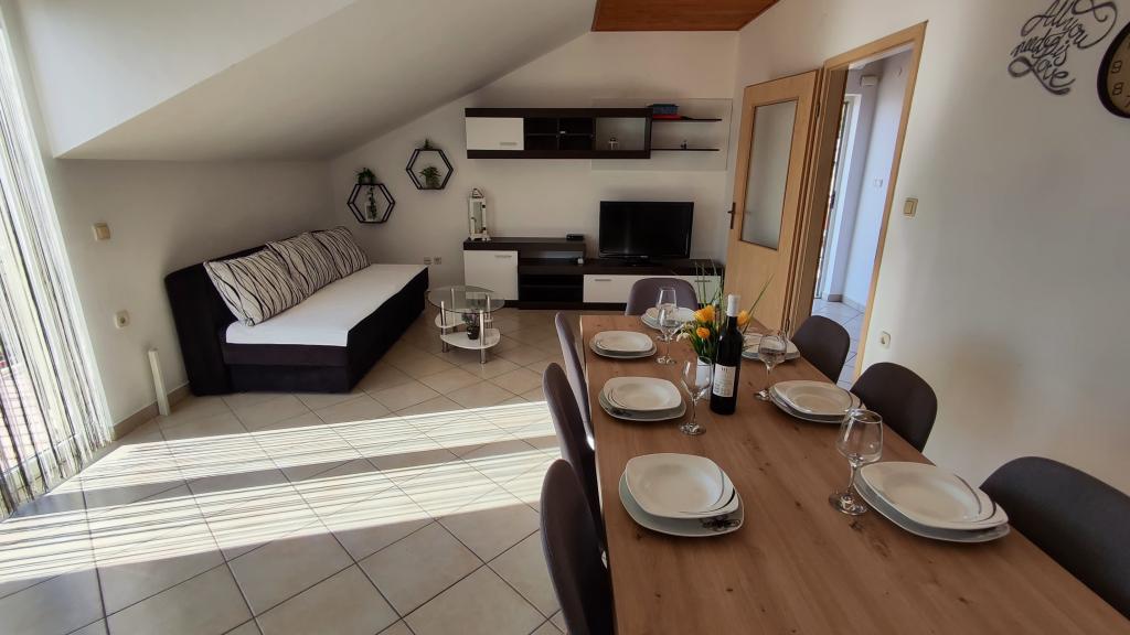 Byt velmi dobré pro rodinu s jedním dítětem, velmi čisté, ložní prádlo a ručníky nahrazena čistou po 7 dnech. Velmi dobře vybavená kuchyň, velká terasa. Hostitelé velmi milí lidé. Děti mluví anglické hostitele. No klimatizace mohou být nebezpeční při velmi teplé noci, protože horké dny, a tak tráví na moře. Nejbližší pláž je kamenitá, ale dobrý a pohodlný přístup na promenádu u moře pláže štěrku - velmi dobré pro děti. Město klidný, což není přeplněné pláže. Dobrým výchozím bodem k návštěvě Splitu, Trogir, Omiš a Makarska Riviera - kdekoli blízko.
