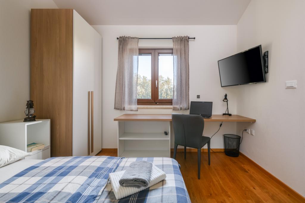 Apartmán Ana Bruna, který se nachází v prvním patře nově postaveného samostatně stojícího rodinného domu, se nachází v klidné části Fažana, obklopen olivovými háji a vinicemi. Moderní a plně vybavené nabízí pohodlné ubytování všem, kteří chtějí relaxaci a zábavu. Vnější část dvora je upravena pro relaxaci a socializaci a jsou zde dvě parkovací místa. Samotná budova je 10-15 minut chůze od pláže nebo nábřeží Fažana. Fažana se nachází v jihozápadní části Istrie a je obklopena četnými upravenými a přírodními plážemi. V bezprostřední blízkosti Fažany se nachází Národní park Brijunské ostrovy, který vás okouzlí svou přírodou a kulturně-historickými pozůstatky. Bohaté letní animační programy a akce ve Fažaně, stejně jako možnost výběru různých rekreací, zajistí nezapomenutelné léto pro každého.