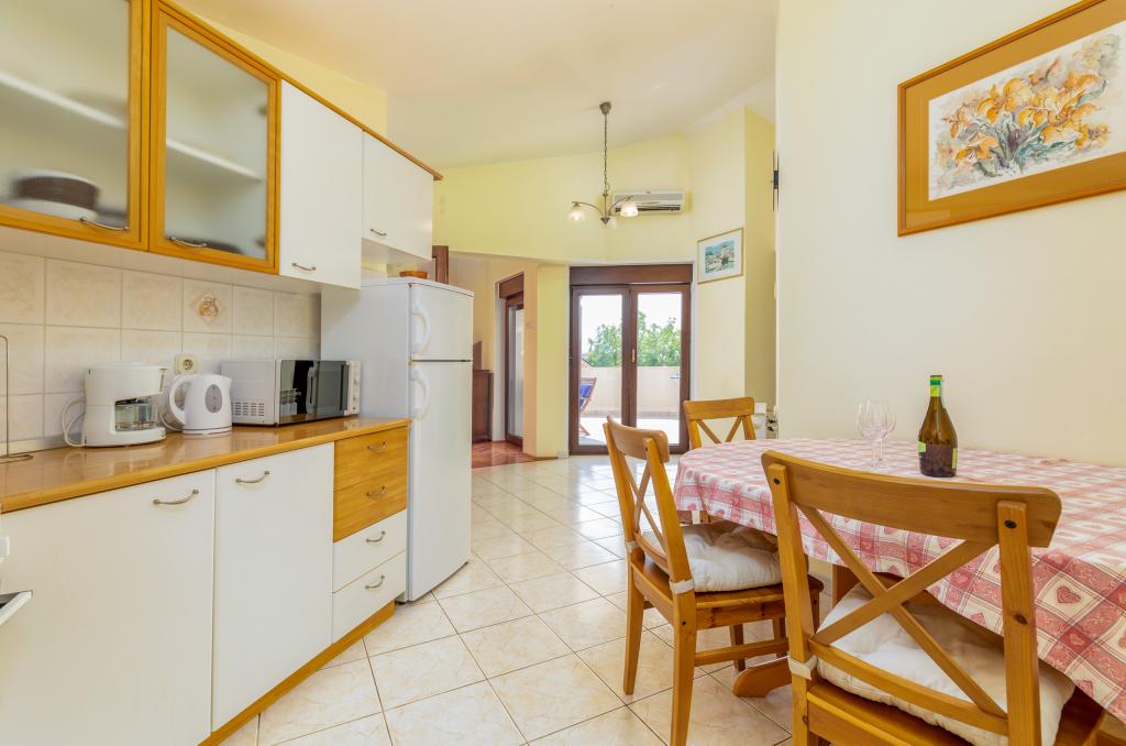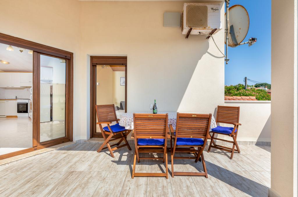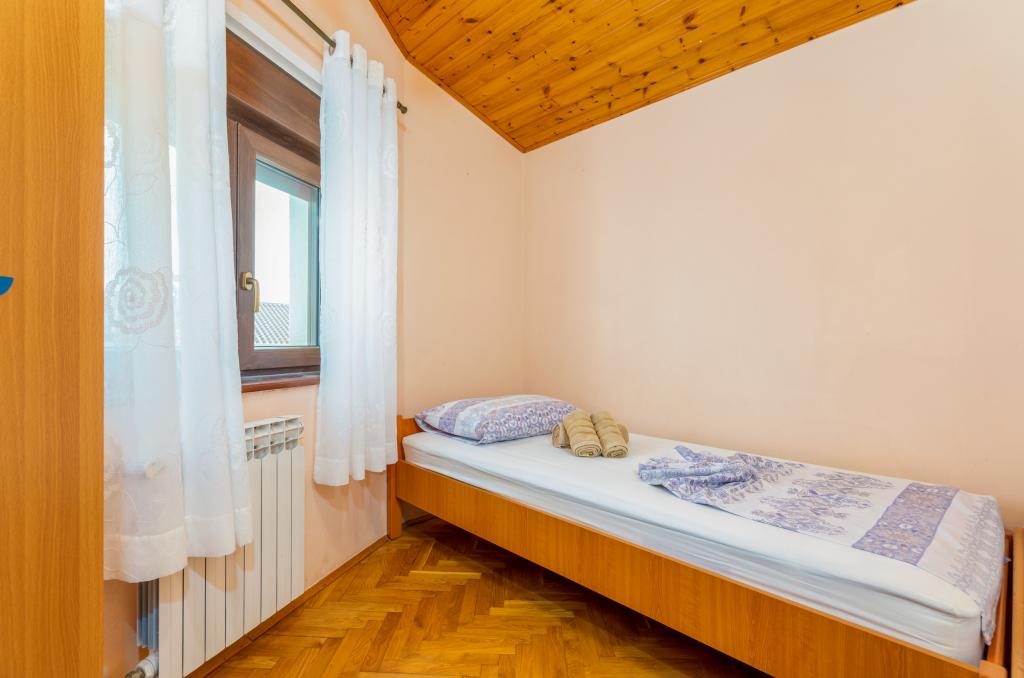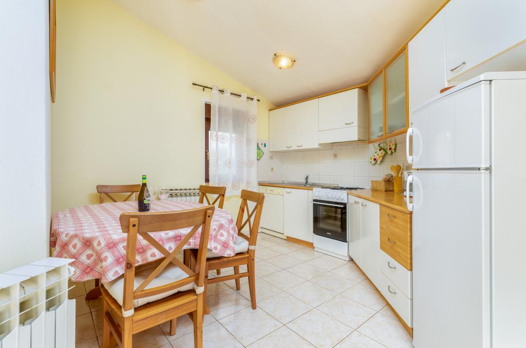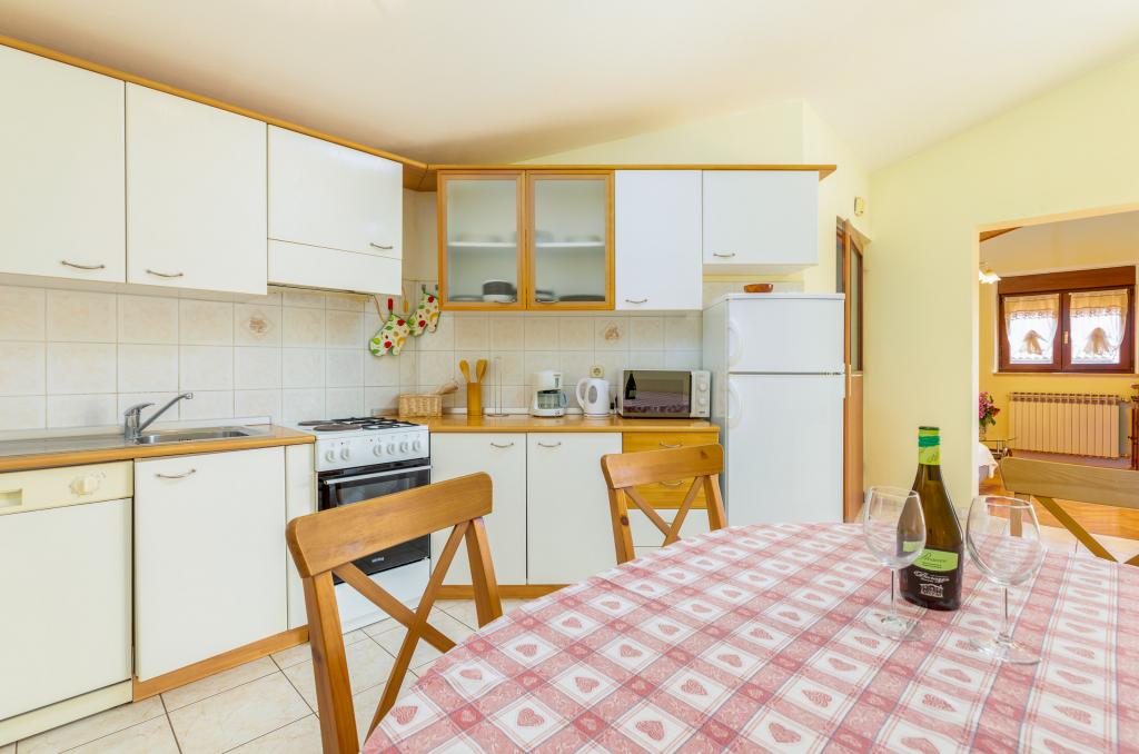 Plně a moderně vybavený a prostorný rekreační apartmán v klidné části Valbandonu. Apartmán má ložnici s manželskou postelí, ložnici se 2 samostatnými lůžky, kuchyň s jídelnou, obývací pokoj, koupelnu a pěknou velkou terasu. Nachází se v prvním patře rodinného domu, kde bydlíme, a má samostatný vchod.
