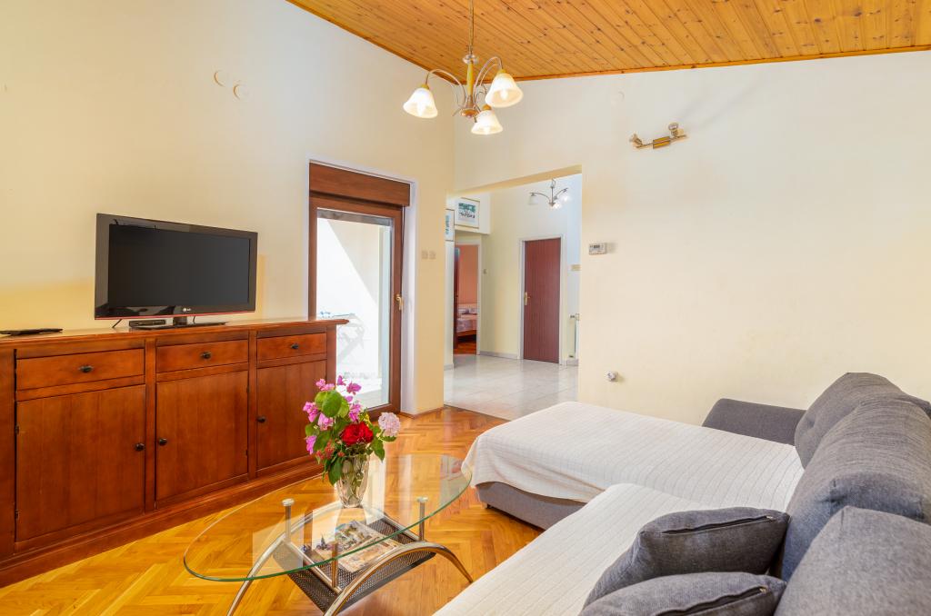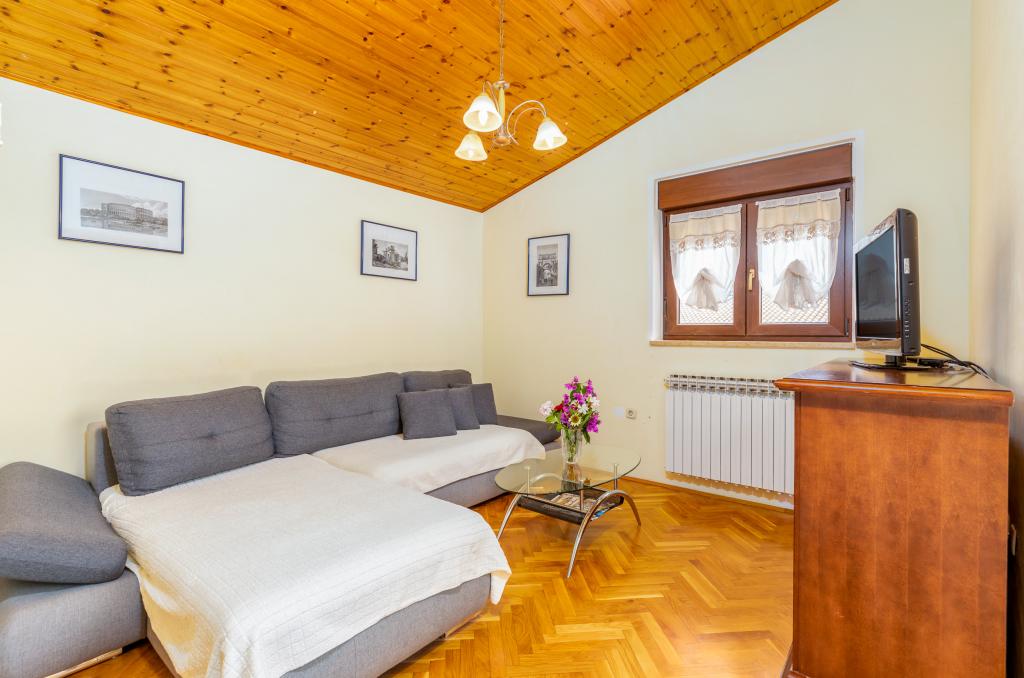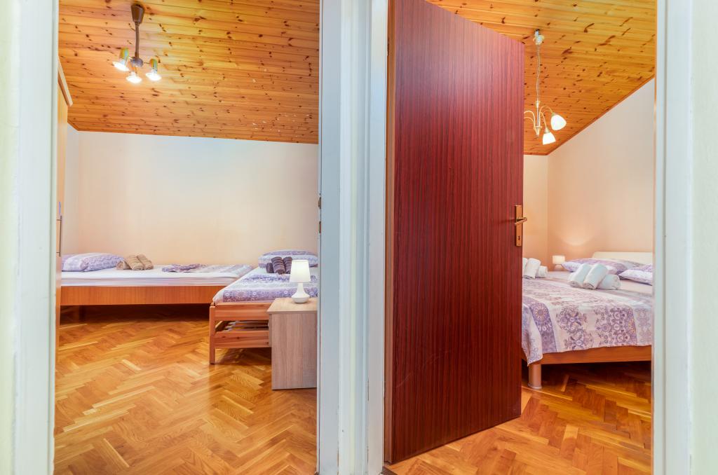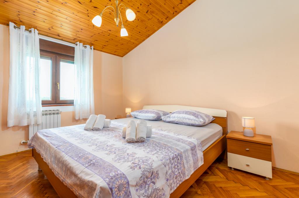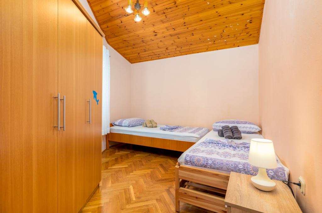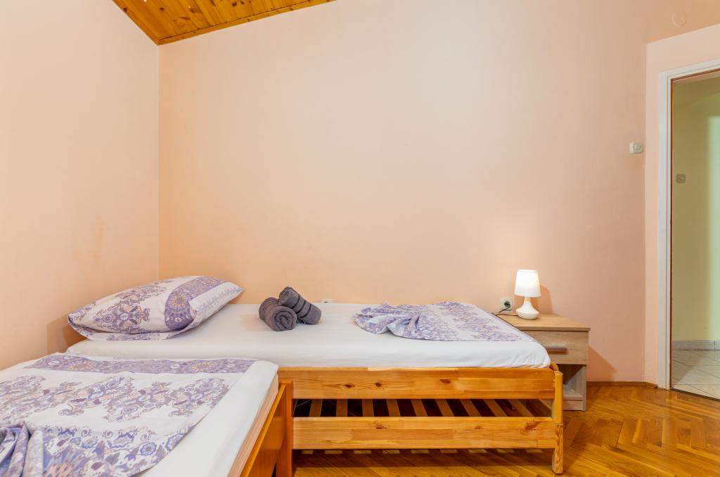 Plně a moderně vybavený a prostorný rekreační apartmán v klidné části Valbandonu. Apartmán má ložnici s manželskou postelí, ložnici se 2 samostatnými lůžky, kuchyň s jídelnou, obývací pokoj, koupelnu a pěknou velkou terasu. Nachází se v prvním patře rodinného domu, kde bydlíme, a má samostatný vchod.