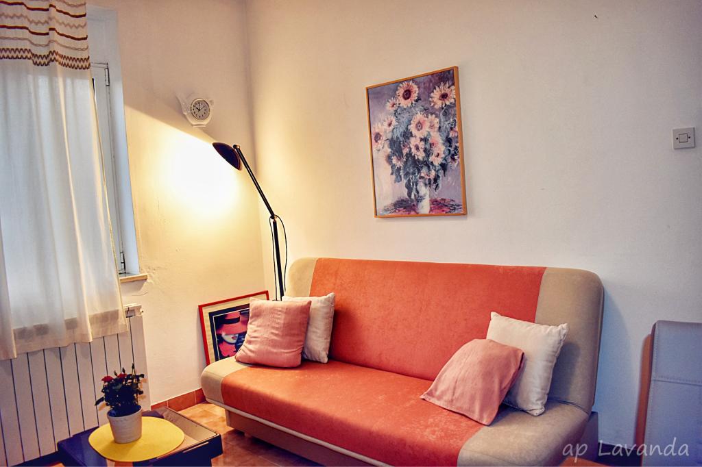 Apartmán Lavanda 18 se nachází v klidné oblasti v obci Valbandon. Je 850 m od moře a 2 km od centra Fažany. Na nejbližší pláž s přírodním stínem a promenádou se dostanete pěšky za 15 minut. Byt se nachází v přízemí rodinného domu obklopeného zelení a velkým dvorem (ideální pro dětskou hru a odpočinek a relaxaci s grilem). Ve dvoře je soukromé parkoviště s přírodním stínem (pro 2 auta). Apartmán má vlastní vchod a nabízí ubytování až pro 4 osoby. Skládá se z: chodby, ložnice s manželskou postelí, ložnice se 2 samostatnými lůžky, koupelny, kuchyně, jídelny, obývacího pokoje a velké terasy. Kuchyň je plně vybavená (sporák s troubou, digestoř, lednice s mrazákem, myčka, mikrovlnná trouba, varná konvice, kávovar, mixér, odšťavňovač, dostatek nádobí pro přípravu a servírování jídla. Další vybavení: TV se satelitním příjmem, WiFi, dvě klimatizace, psací stůl na notebook.