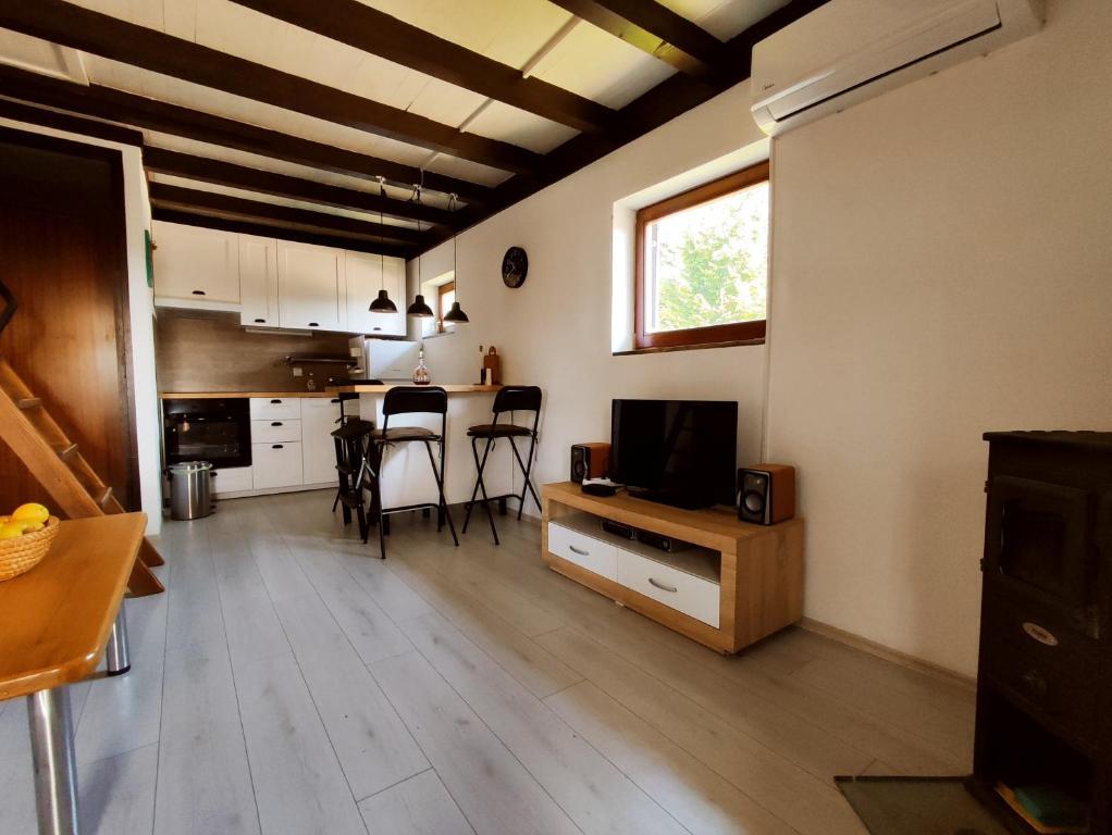 Malý domek, který plně uspokojí i ty nejnáročnější návštěvníky. V domě najdete vše, co potřebujete pro bezstarostný pobyt, a k řece a krásnému vodopádu dojdete za pár minut (300m). Dům se nachází na velmi klidném místě. V centru města jsou 2 obchody, pošta a kavárna. Dům má výhled na řeku a vodopád. Vzhledem k tomu, že se jedná o dvoupodlažní budovu, je možné pronajmout sousední byt (5 osob). Byt v přízemí sestává z kuchyně (lednice s mrazákem, troubou a 4 elektrickými plotýnkami, veškeré potřebné nádobí a kuchyňské náčiní), obývacího pokoje (rozkládací pohovka, TV, hudební linka, stolní hry, knihy) a koupelny (WC, bidet), sprcha a umyvadlo). Nahoře v podkroví je manželská postel (160x200) a dvě samostatná lůžka (90x200) a malá terasa s výhledem na vodopád. Na zadním dvoře je gril. Apartmán je pro max. 5 osob + dětská postýlka a minimální délka pobytu jsou dvě noci. Dům se nachází na velmi klidném místě. V centru města jsou dva obchody, pošta a kavárna.