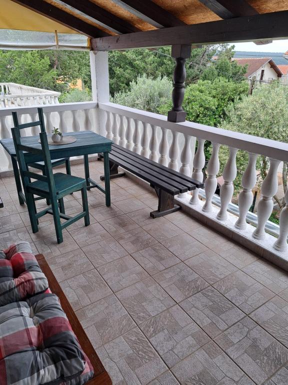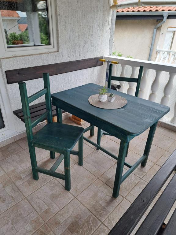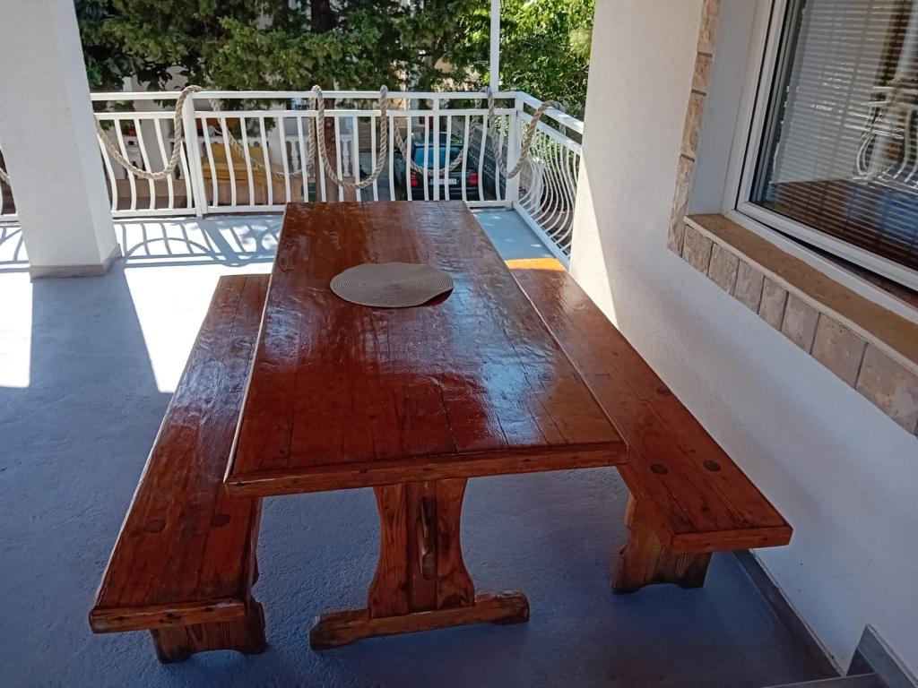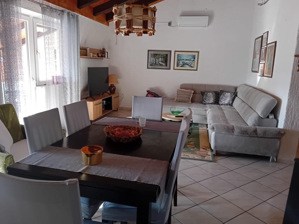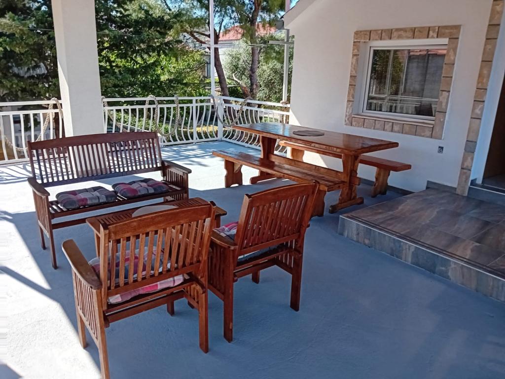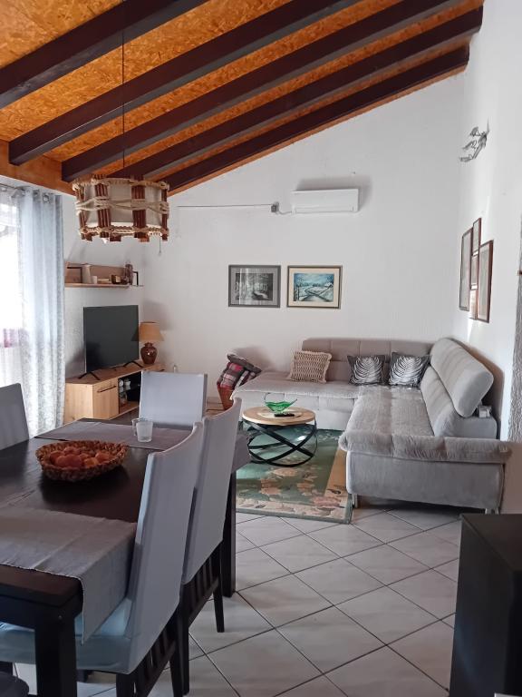 Apartmány jsou umístěny v přízemí, která je první ulice na moře. Jsou vybavena spotřebiči (lednice, sporák, trouba. Mikrovlnná trouba, nádobí a příbory), TV, parkování, nejsou klimatizované. Každý z nich má vlastní terasu s výhledem na krajinu. Možnost využití dvoře grilování. Apartmány jsou vhodné pro malou rodinu nebo pár. Domácí mazlíčci jsou vítáni za malý poplatek. Ručníky a ložní prádlo se mění jednou za týden. 50 m od moře, 200 m od centra města, a první obchod okamžitě přes ulici. Přestože se nachází na hlavní ulici, skryté terasy a olivovníky, granátové jablko.