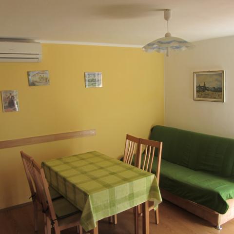 Ideální místo pro rodinnou dovolenou. Pláž se stínem, kavárna, obchod a restaurace se nachází v okruhu 100 metrů. Plně vybavené apartmány s terasou, klimatizací, internetem, možností využití venkovní kuchyně s grilem. Pokud máte rádi aktivní dovolenou, apartmán se nachází pod Velebitem, kam se dostanete pěšky nebo autem. Z kopce je nádherný výhled na celý záliv.
