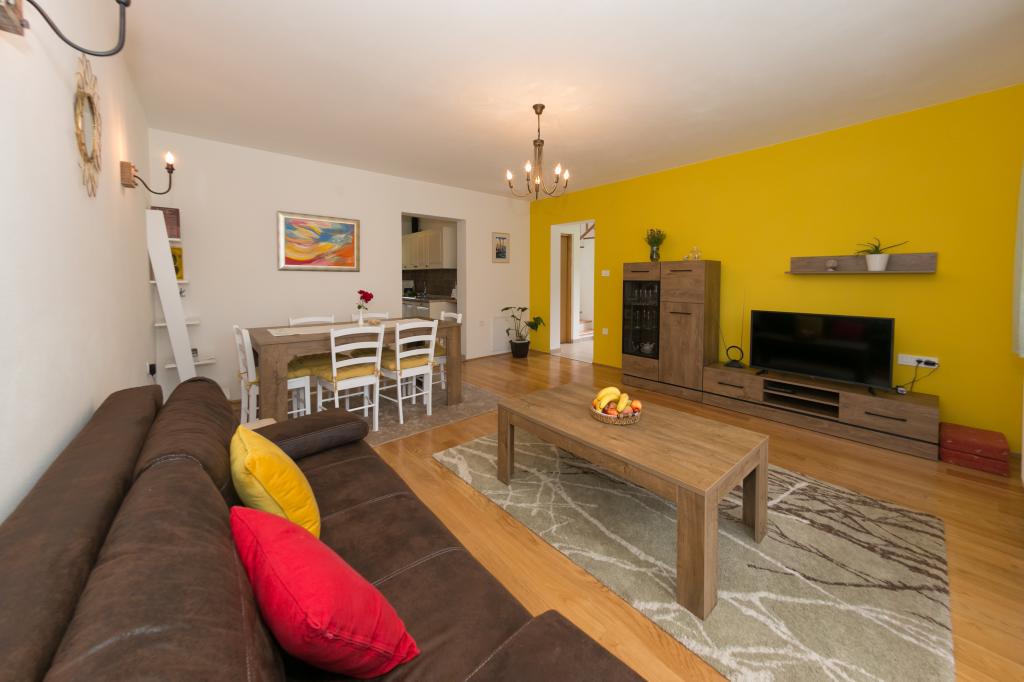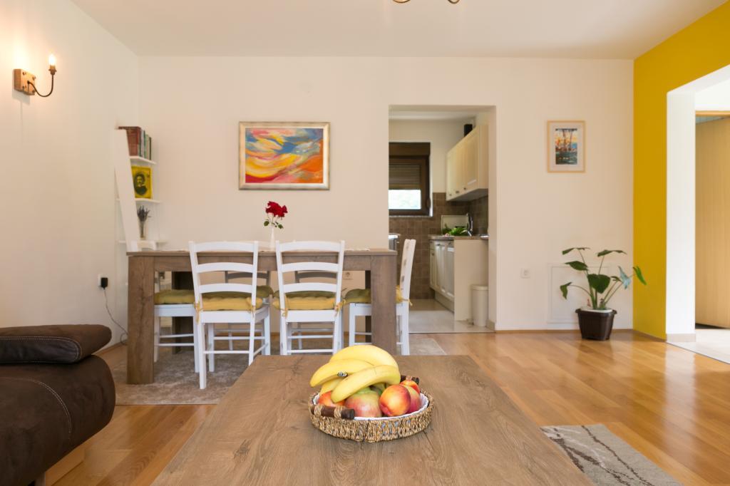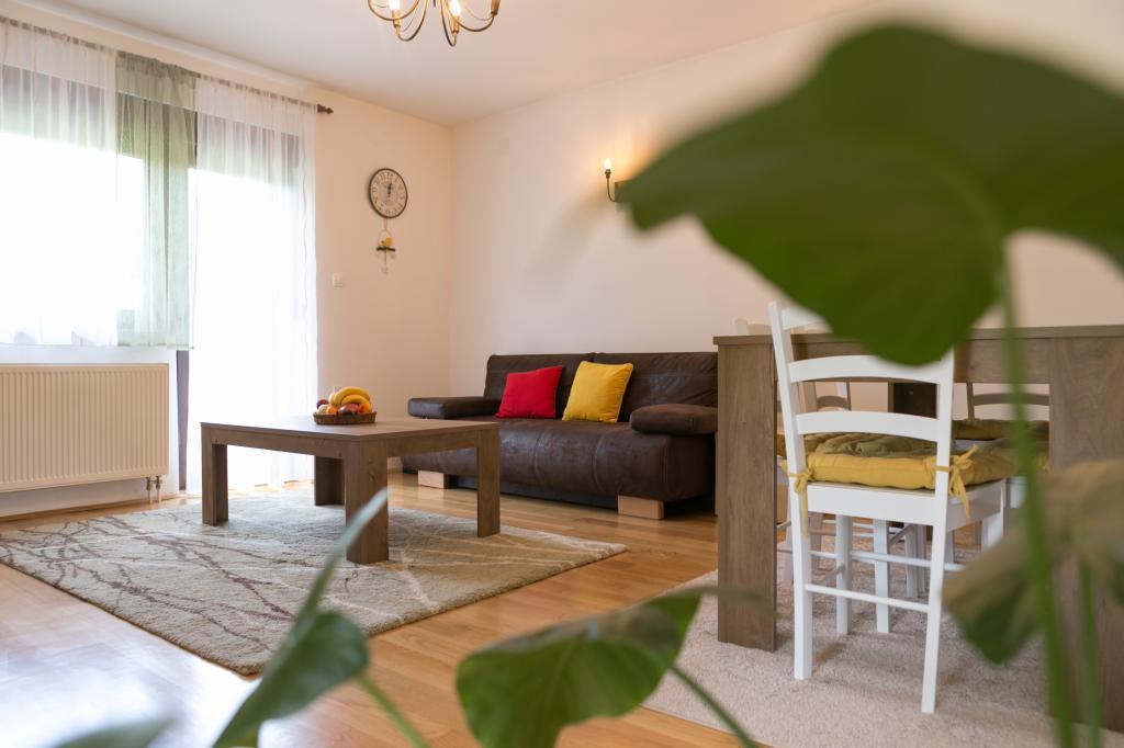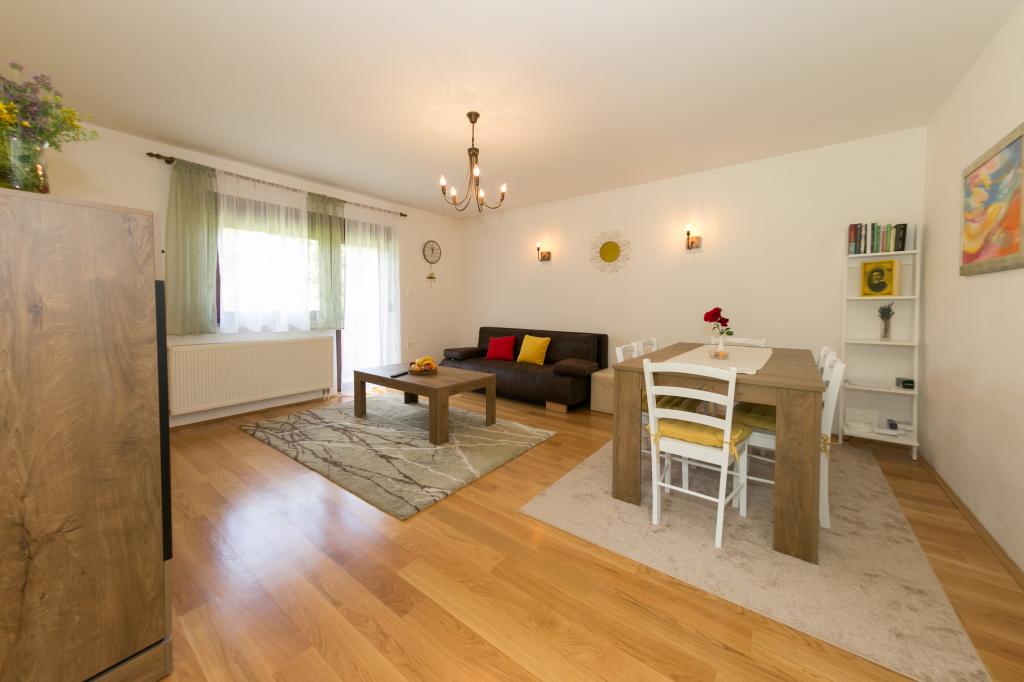 Dům je dostatečně izolovaný a daleko od prvních sousedů, obklopen lesem a zelení, díky čemuž je pobyt na zahradě příjemný a relaxační, přesto je dostatečně blízko do centra města, restaurací, obchodů atd. Velký dvůr nabízí možnost pro různé sportovní aktivity a pro malé i velké fotbalisty mají k dispozici branku a míč.