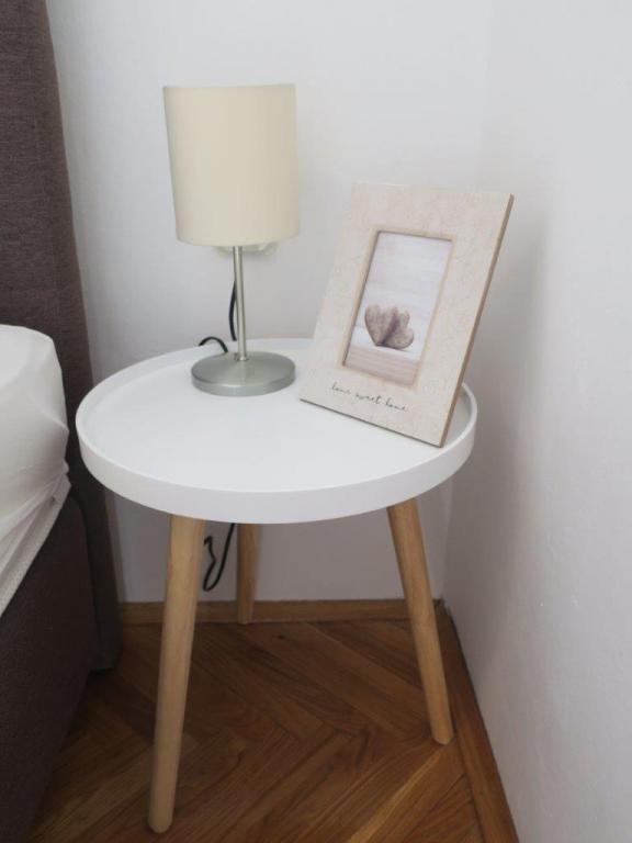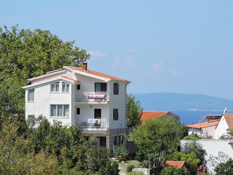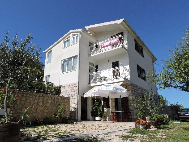 Apartmán 100 m2 pro 8 1 osob. Apartmán má tři samostatné ložnice (jedna dvoulůžkový a dvě třílůžkové), dvě koupelny, kuchyň s jídelnou a dva balkony s krásným výhledem na moře a okolí. Všechny pokoje mají klimatizaci. Ke stolování mohou hosté využít i gril se stolem a lavicemi. Parkování pro hosty je zdarma.
