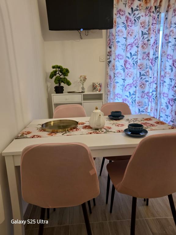 Bydleli jsme v bytě Ariana ve druhém patře. Je poměrně prostorný a vybavený vším, co potřebujete, dokonce i pračkou. Oba pokoje jsou klimatizované, což nám poskytlo soukromí, protože jsme nemuseli nechávat dveře pokoje otevřené. Balkon má krásný výhled na moře a hory, je dostatečně velký na večeři, je orientován na klidnou stranu, kde neprojíždějí žádná auta. Parkování je bezpečné ve dvoře domu. Rádi přijedeme znovu.