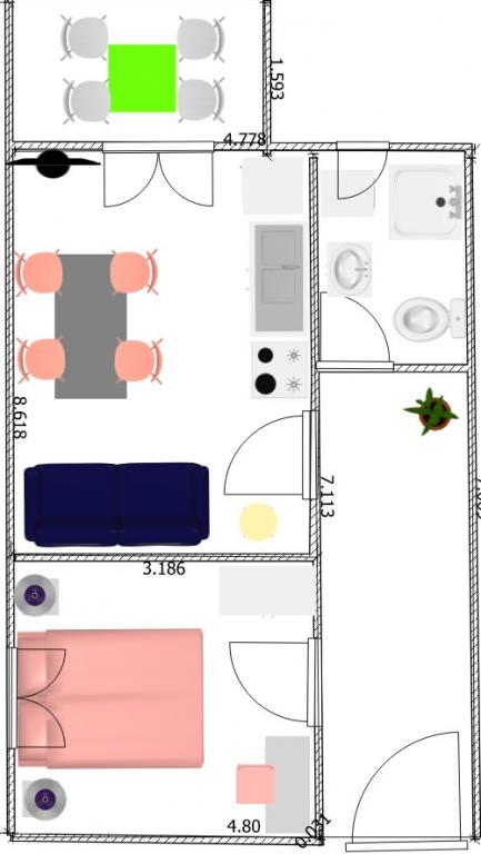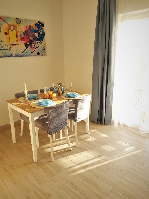 Apartmány se nacházejí v domě s celkem 6 apartmány. Objekt je vzdálen 150 metrů od pláže a pro všechna auta je k dispozici parkování v areálu. Všechny apartmány mají kryté balkony o rozloze 8 nebo 16 metrů čtverečních a jsou klimatizované ve všech pokojích. V apartmánech se mohou ubytovat pouze hosté, kteří jsou v apartmánech registrováni.