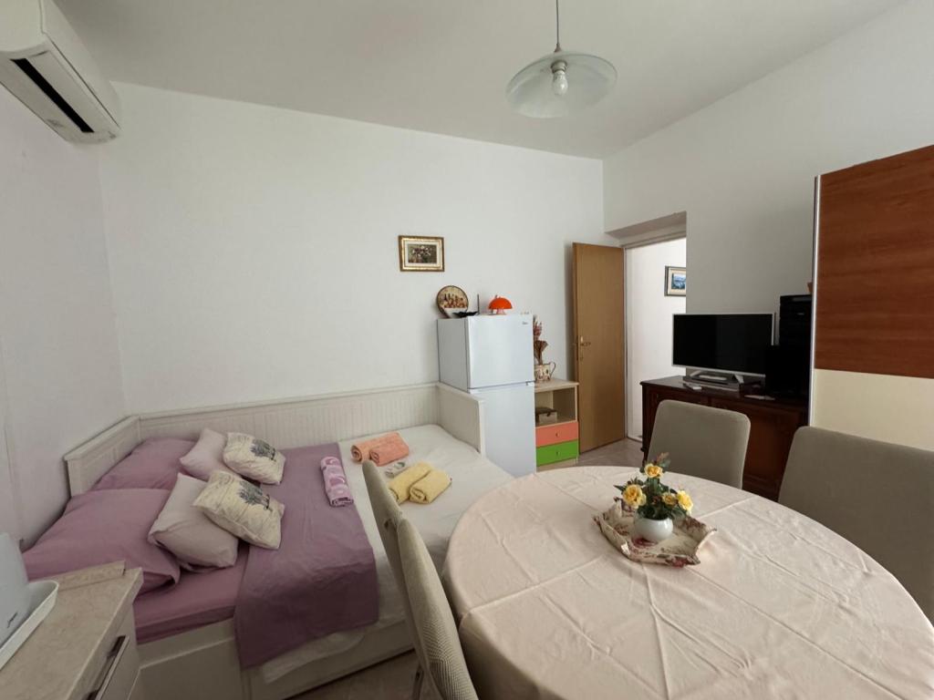 Upřímně doporučuji toto místo pro rodiny s dětmi, páry nebo starší lidi, apartmán splnil všechna očekávání, čisté, pohodlné postele, pračka, plně vybavená 4 plotýnková kuchyně, klimatizace pouze 10 hodin denně, ale stačí, pračka, toustovač, velká lednice, klidné místo a krásný výhled, exotická poloha budovy u krásných palem, blízkost moře a pláže, která byla čistá a nepřelidněná - to bylo zjevení, a lehátka a deštníky v ceně pobytu jsou opravdu vzácné. Vedle je Sudenac a podnik s kebabem a hranolky, když vyjdete z budovy, všude podél moře a promenády jsou hospůdky, vedle je také pekárna a majitelé Leo a Anita se starají o to, aby bylo vše dobré. Hosté. I když jsme byli na celodenním výletě, prádlo nám před bouřkou sundali, aby nepromoklo, což bylo moc fajn. Doporučuji toto místo každému, kdo chce mít moře na dosah ruky, a dobrá cena a ne příliš přeplněné. Velkým plusem je také rovná plocha pro procházky s kočárkem a dětmi