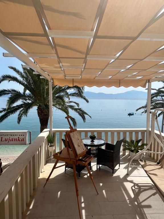 Doporučujeme pohodlný apartmán Lujanka s teplem pro každého. Třikrát trávíme letní dovolenou zde a máme-li příležitost vrátit se příští rok. Velké, nezapomenutelné ubytování! Náš milý, ochotný a pozorný hostitel zajistí pohodlí našich hostů. Na pláži jsou pohodlné lehátka. Neustále poskytují čerstvé voňavé ručníky a výměnu ložního prádla. Z terasy máte nádherný výhled na moře. Stín palmových stromů je příjemný na ochlazení. K dispozici jsou obchody, pekárny, poštovní restaurace, kavárny a vedlejší dveře na pěší ulici. Během posledních 20 let jsme trávili spoustu prázdnin v Jaderském moři, ale toto místo a ubytování se staly naší oblíbenou! Je to nejpohodlnější a nejvhodnější místo pro relaxaci každoroční únavy. Doporučujeme to všem!