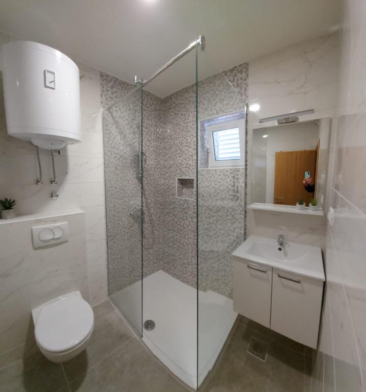 Ubytovali jsme se v apartmánu 4+2 a byli jsme nadšení. Všechno je dokonale čisté, uklizené a nové. Tento apartmán je prostorný s velkou a krásnou koupelnou a výhledem na moře. Hostitelé jsou opravdu úžasní a obzvlášť milí. Toto ubytování vřele doporučujeme a také jejich domácí třešňový likér. Krásné pláže jsou jen pár minut chůze po obou stranách. Také prakticky za rohem jsou bary, restaurace, pekárny atd... Děkujeme za vše a na shledanou příště!