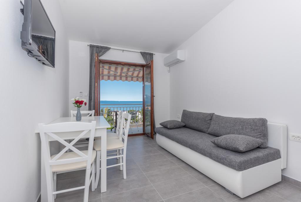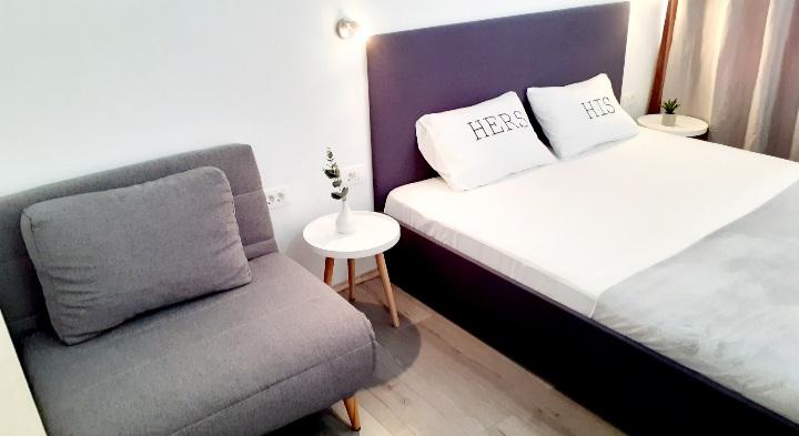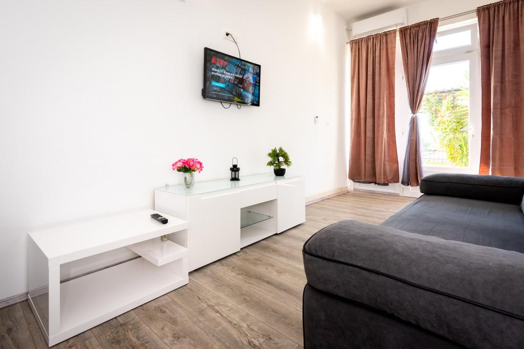 Nově zrekonstruované apartmány vybavené kuchyní, klimatizací, smart TV, vše v ceně bez skrytých nákladů. Vzdálenost od moře je jen 3 minuty chůze, parkování zdarma, WI-FI, netflix, klimatizace a pobytová taxa, vítány.
