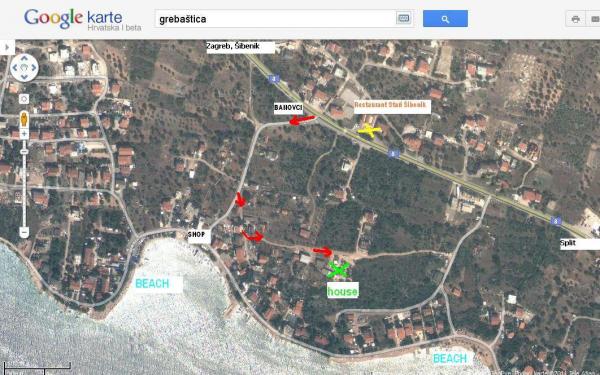 Grebaštica je malebné městečko ležící ve stejnojmenné zátoce mezi Šibenikem a Primoštenem. Pláže jsou oblázkové s křišťálově čistým mořem. Místo je ideální pro klidnou rodinnou dovolenou. Pronajímáme 1 pohodlný apartmán v 1. patře o velikosti 70 m2, který se skládá z: 2 ložnic s manželskými postelemi, koupelny s WC (sprcha), obývacího pokoje a kuchyně (lednice s mrazákem), terasy 20 m2 s výhledem na moře. Apartmán je klimatizovaný, má TV SAT, Wi-Fi připojení k internetu, gril, zahradu... Nabízíme také nově zrekonstruovaný studiový apartmán pro 2 osoby. Vítejte! Vaši hostitelé - Mirko a Jadranka; tel: +385 95 832 3015