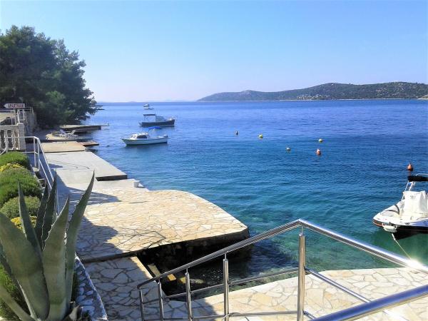 Celý dům se třemi apartmány je k pronájmu, ideální pro tři rodiny a skupiny do 12 osob. Dům se nachází na pěkném místě, 7 m od pláže v klidném turistickém místě Šparadići. Dva apartmány mají prostorné terasy s krásným výhledem na moře a spodní apartmán má oplocenou zahradu. K dispozici je také velká terasa nad mořem s grilem a dvěma zahradními stoly, kde si hosté mohou posedět ve stínu fíkovníku a vinné révy. Majitelé v domě nebydlí. Všechny apartmány mají klimatizaci, bezplatné parkování, TV, WiFi, lehátka a slunečníky zdarma na pláži a terasách. Možnost kotvení lodí před domem. Ideální místo pro vaši rodinnou dovolenou. Vítejte.