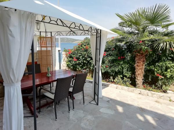 Dům je na skvělém místě - několik metrů od moře. Byli jsme stromové rodiny - celý dům byl náš. Měli jsme vlastní pobřeží, lehátka, slunečníky, velký dvůr as venkovní kuchyní - vše bylo zahrnuto v ceně těchto apartmánů. Vše čisté, místa dostatek. Majitel byl neuvěřitelný a velmi nápomocný. Setkal se s námi s uvítacími studenými nápoji, doporučil místa k večeři. Před naší cestou poslal fotky s vodou, pláží pro děti atd. na co jsme se ptali. V tomto místě nejsou žádné obchody, ale každý den jsou zde místní lidé, kteří každé ráno nosili chleba, zmrzlinu a zeleninu.
