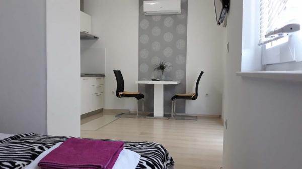 Kudos paní Darii za její laskavost, vstřícnost, krásně zdobené a čisté byty. Doporučuji dovolenou v apartmánech Ana, moderních a velmi elegantních apartmánech (zůstal jsem v Studio apartmánu 2 roky po sobě a nyní v A2 + 1). Pro lidi, kteří hledají klid, daleko od hluku a letních davů, a přesto je pláž blízko, 5 minut chůze, vhodné pro děti. Paní Daria je vždy usměvavá, vstřícná a velmi laskavá. V blízkosti dálnice (apartmány těsně pod dálnicí, ale není slyšet žádný hluk ze silnice a aut), takže nemusíte tlačit do úzkých a rušných ulic Všechny chvály za hostitele a za apartmány a za přijatelné ceny! Hodnocení 5+ a doporučuji lidem, kteří chtějí odpočívat na menším místě. Tamara, Koprivnica!