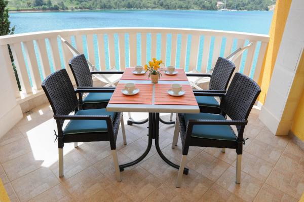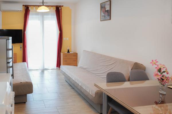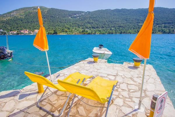 Vítejte na VILA MORE nachází na slunném pobřeží v místě zvaném. Pěkně zařízené apartmány (48-62-72m2) zahrnují: ložnice, obývací pokoj s kuchyňským koutem, koupelna se sprchovým koutem a balkonem. Na Vaši žádost, můžete využít terasu, gril, venkovní sprcha, Kotvení lodí a pěkné parkoviště pro vaše auto, zdarma. K vašim službám je kánoe a člun - 5 metrů. Každý byt může ubytovat 2, 3 nebo 4 osoby. Apartmán č. 1 má výhled na les a parkování a bočním výhledem na moře a apartmány NO. 2, 3, 4 a 5 mají přímý výhled na moře. Přímo u moře - 10 metrů. Mají příjemný čas v Vila více bytů!