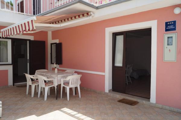 Apartmány se nacházejí v malém klidném místě, které se jmenuje Šparadići poblíž Grebaštica, velmi blízko moře, odděleného od hluku, hluku z auta. Toto místo je idylické pro dovolenou a může se pochlubit jasným a čistým mořem. Apartmány mají velké terasy s výhledem na moře, zabezpečené parkoviště, WI-FI a dětské postýlky. Pláž je 7 metrů daleko. Možnost připojení na jednu loď. Šparadići jsou vzdáleny od Šibeniku 16 km, Primoštenu 10 km a Národního parku Krka 40 km. Vítány.