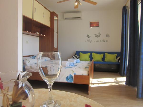 V areálu se nachází u vjezdu do města Hvar, 5 -10 minut chůze od centra města a pláže, na klidném prostředí s výhledem na moře, město a pekelné ostrovní pevnost. Apartmány jsou umístěny v prvním patře nově postaveného rodinného domu, plně zařízené a všechny mají terasy s výhledem na moře, město a ostrovy, na zahradě je gril pro všechny hosty, a s domem a parkoviště, všichni hosté dostat welcome drink. Příjezdu do bytu 14 hodin, a jít až na 10 hodin.