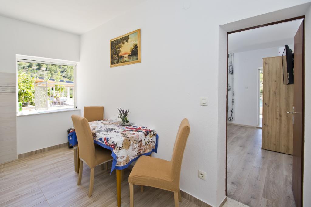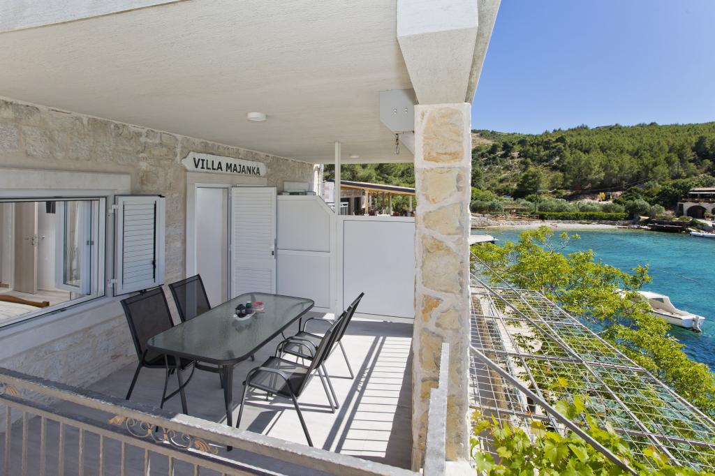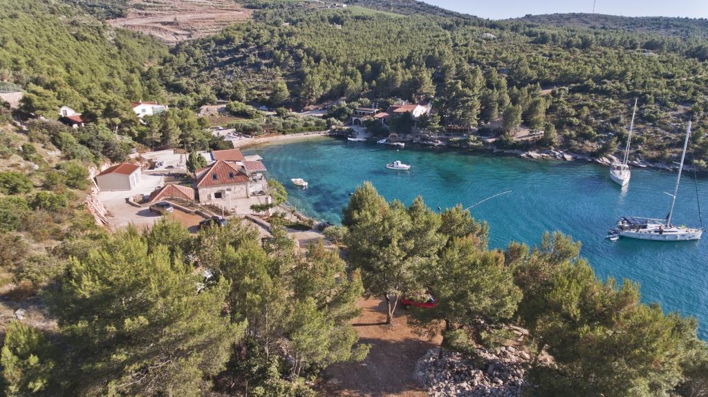 Apartmány v klidné zátoce 3,5 km od města Hvar. Dům se nachází v blízkosti kempu Vira, naproti hospody Ringo. Znamenitá volba pro klidnou dovolenou u moře, přesto v blízkosti veškeré občanské vybavenosti. Až do domu je po soukromé komunikaci, a je možné k přístupu od moře. Dům, ve kterém jsou byty má soukromou pláž s lehátky a sprchou, kotvištěm pro člun, schodiště vede ke vchodu. Apartmány se skládají z WC, kuchyň, ložnice a velká terasa, která se nachází nad mořem. Budeme také hovořit o venkovní gril, přírodní odstín, krásné výhledy a soukromé parkoviště. Na pláži je oblázkové a boční prostory mají ploché kameny, vhodné pro slunění, chráněné před nežádoucími pohledy.