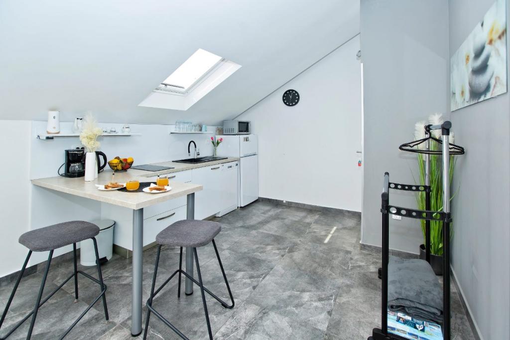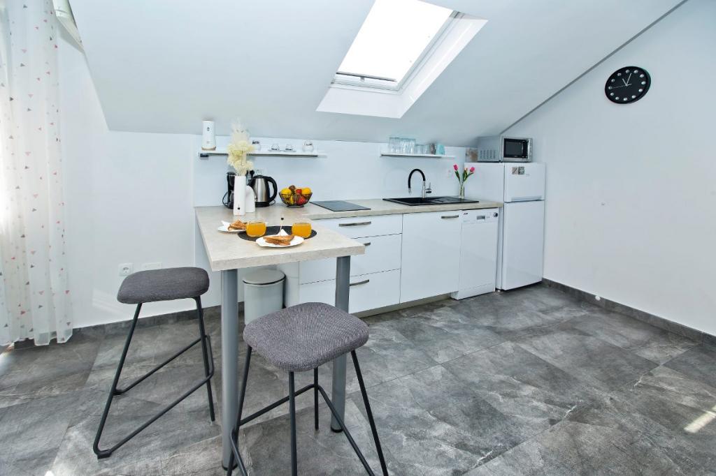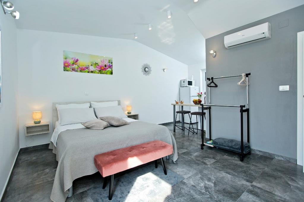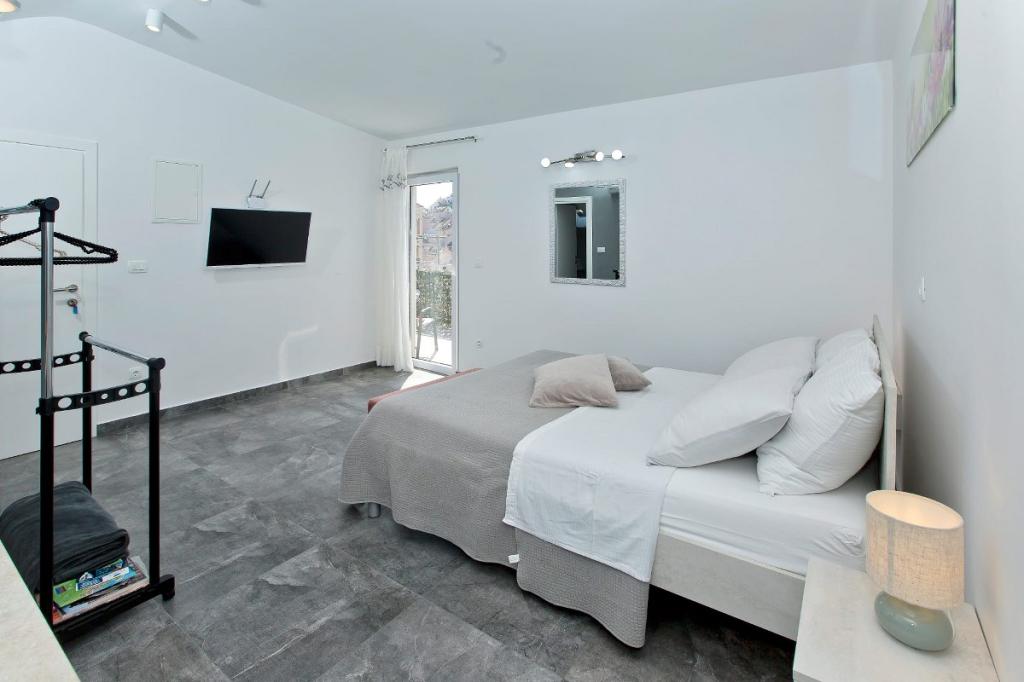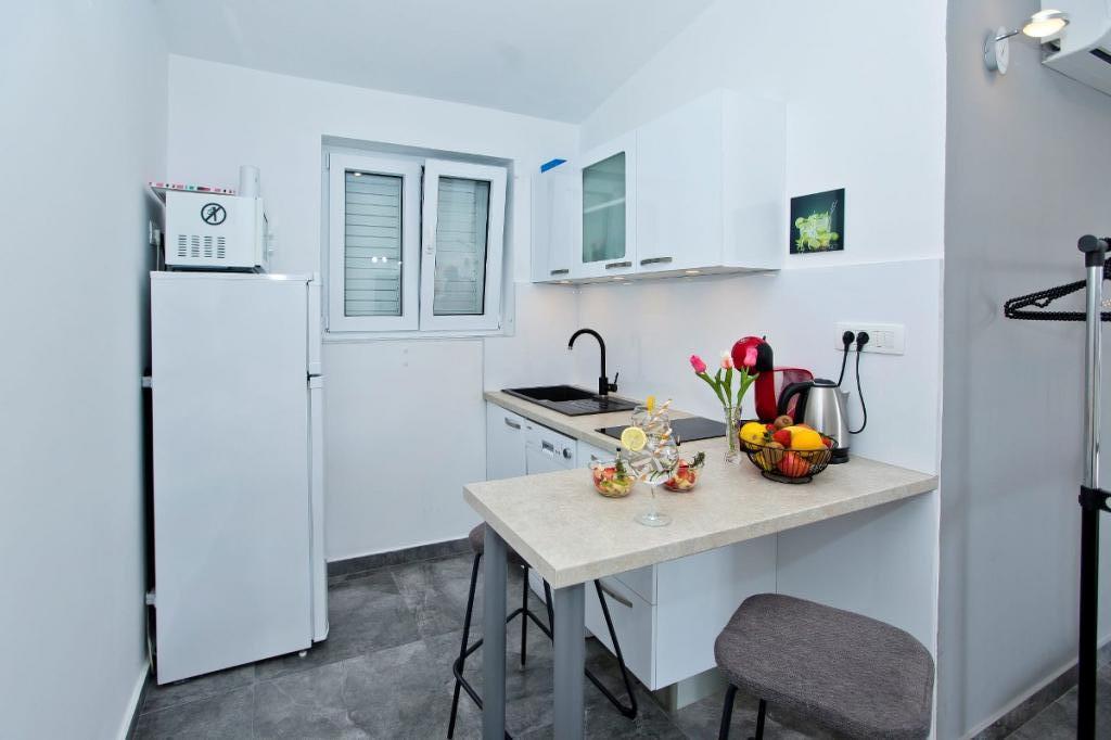 Elegantně zařízené studiové apartmány, které se nacházejí v samém centru města Hvar, nabízejí perfektní kombinaci pohodlí a vynikající polohy. Apartmány jsou světlé a moderní, vybavené pohodlnou manželskou postelí (160 × 200), plně vybavenými kuchyněmi se vším potřebným vybavením (lednička s mrazákem, rychlovarná konvice, toustovač, varné plotýnky, mikrovlnné trouby, myčky nádobí), koupelnami se sprchovým koutem, klimatizací a oběma soukromými terasami (venkovní stůl, židle a lehátka) s fascinujícím výhledem na staré město a krásný hvarský přístav. Zažijte to nejlepší z Hvaru doslova na prahu: okouzlující kavárny, špičkové restaurace, útulné snídaňové podniky, místní butiky a obchody se suvenýry. Hlavní náměstí s katedrálou sv. Štěpána a nejstarším veřejným divadlem v Evropě jsou jen 3 minuty chůze od vašich dveří. Budete bydlet v samém centru Hvaru, přesto v dokonale odlehlé ulici, která vám zajistí klidný a příjemný noční spánek.