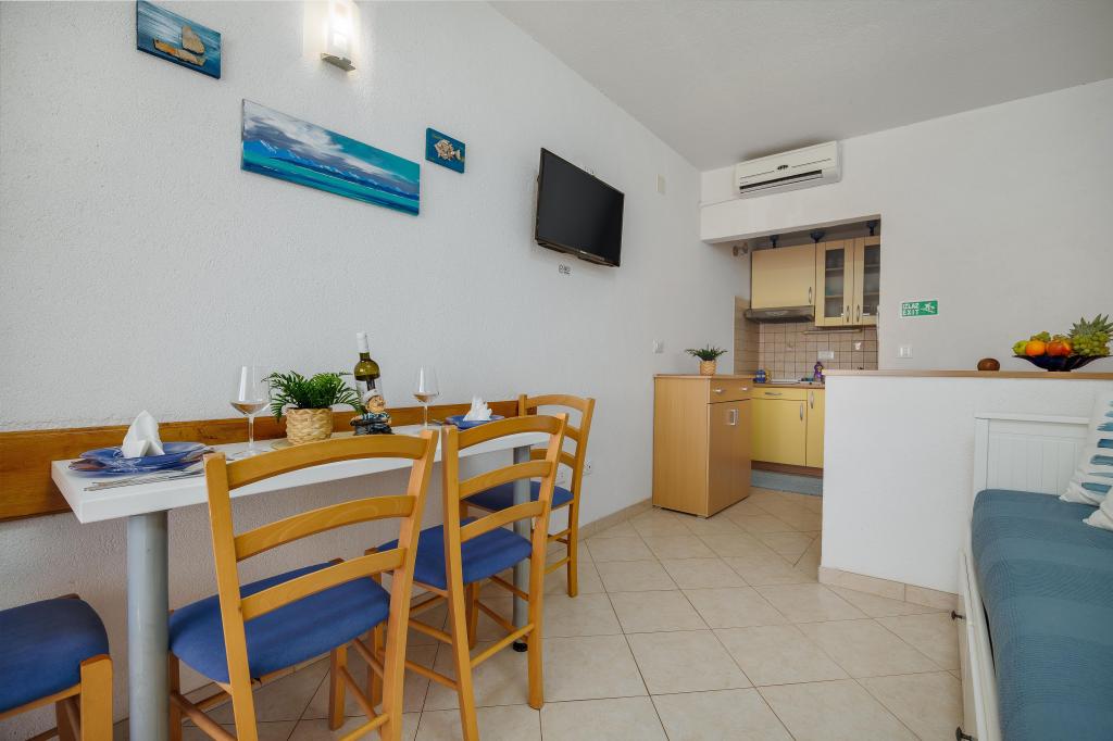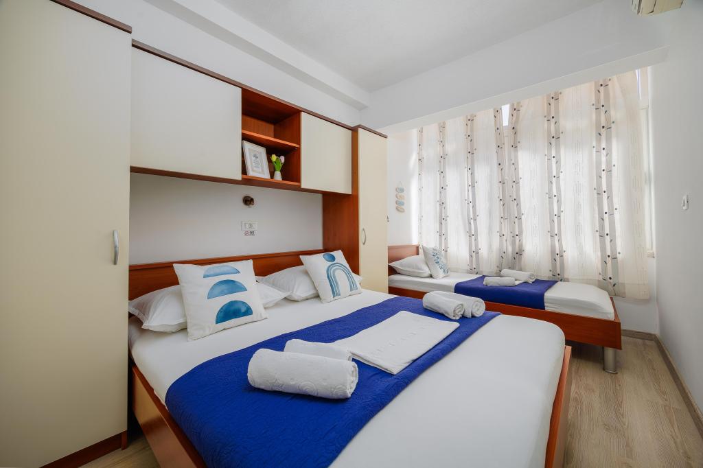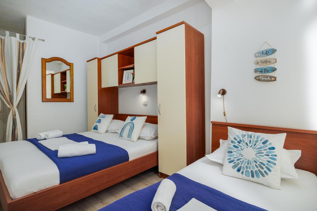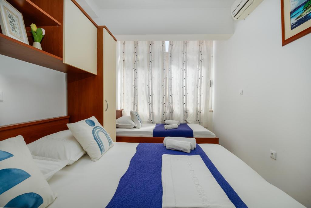 Apartmán Modrá laguna se nachází na skvělém místě, pouhých 30 metrů od moře a hlavní pláže v samém centru Igrany. Vše, co potřebujete pro perfektní dovolenou - restaurace, kavárny a obchody - je jen pár kroků daleko, bez nutnosti auta. Tento moderní dvoupatrový apartmán nabízí pohodlné ubytování pro 3+1 osoby. Zvláštní atmosféru dotváří balkon s výhledem, ideální pro ranní kávu nebo večerní relaxaci u moře. Apartmán je plně vybaven pro bezstarostný pobyt (WiFi, klimatizace, kuchyň, pohodlný obývací pokoj) a díky dispozici na dvou podlažích poskytuje další soukromí a pohodlí. Poloha v centru města vám umožní užít si klidnou dovolenou u moře se všemi vymoženostmi v dosahu. 30 m od moře balkon s výhledem centrum města WiFi a klimatizace blízko restaurací a obchodů "Rádi vám doporučíme nejlepší pláže a restaurace v okolí "