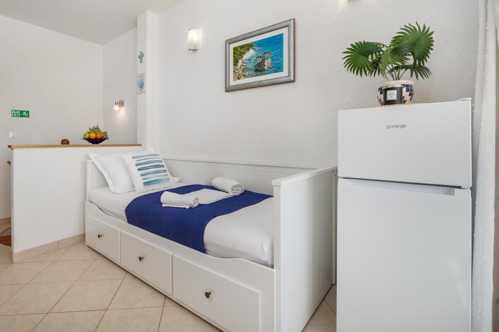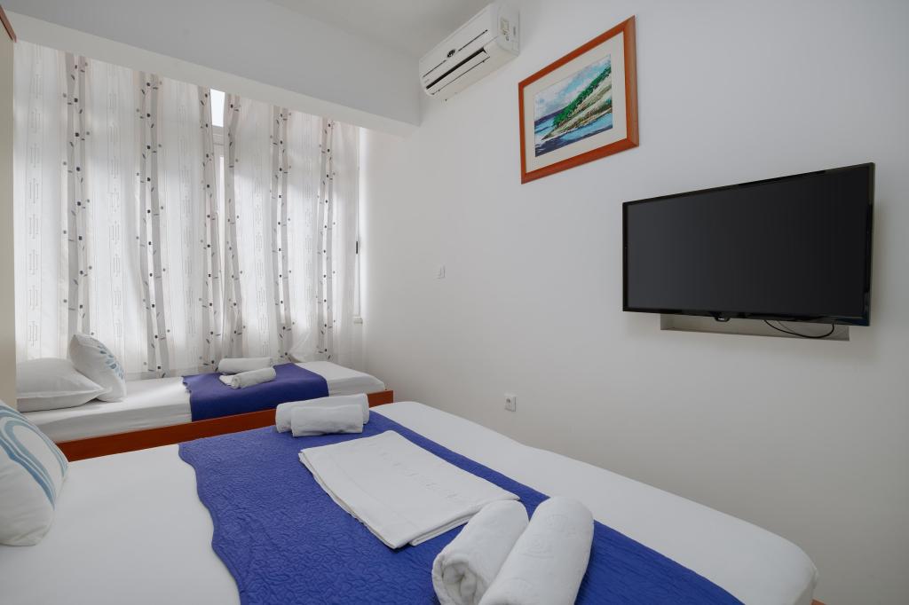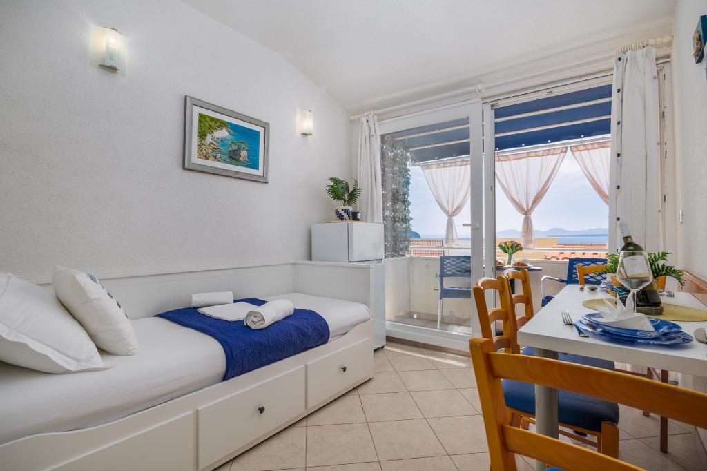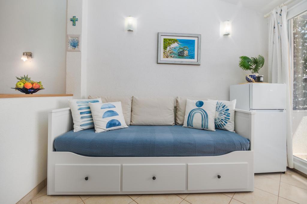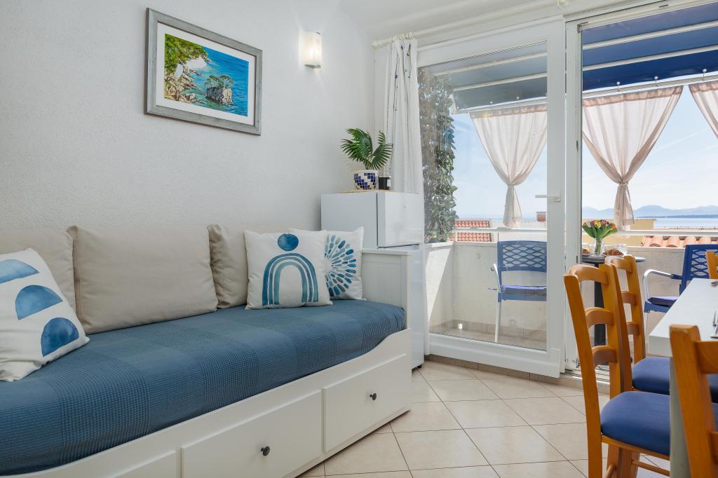 Apartmán Modrá laguna se nachází na skvělém místě, pouhých 30 metrů od moře a hlavní pláže v samém centru Igrany. Vše, co potřebujete pro perfektní dovolenou - restaurace, kavárny a obchody - je jen pár kroků daleko, bez nutnosti auta. Tento moderní dvoupatrový apartmán nabízí pohodlné ubytování pro 3+1 osoby. Zvláštní atmosféru dotváří balkon s výhledem, ideální pro ranní kávu nebo večerní relaxaci u moře. Apartmán je plně vybaven pro bezstarostný pobyt (WiFi, klimatizace, kuchyň, pohodlný obývací pokoj) a díky dispozici na dvou podlažích poskytuje další soukromí a pohodlí. Poloha v centru města vám umožní užít si klidnou dovolenou u moře se všemi vymoženostmi v dosahu. 30 m od moře balkon s výhledem centrum města WiFi a klimatizace blízko restaurací a obchodů "Rádi vám doporučíme nejlepší pláže a restaurace v okolí "