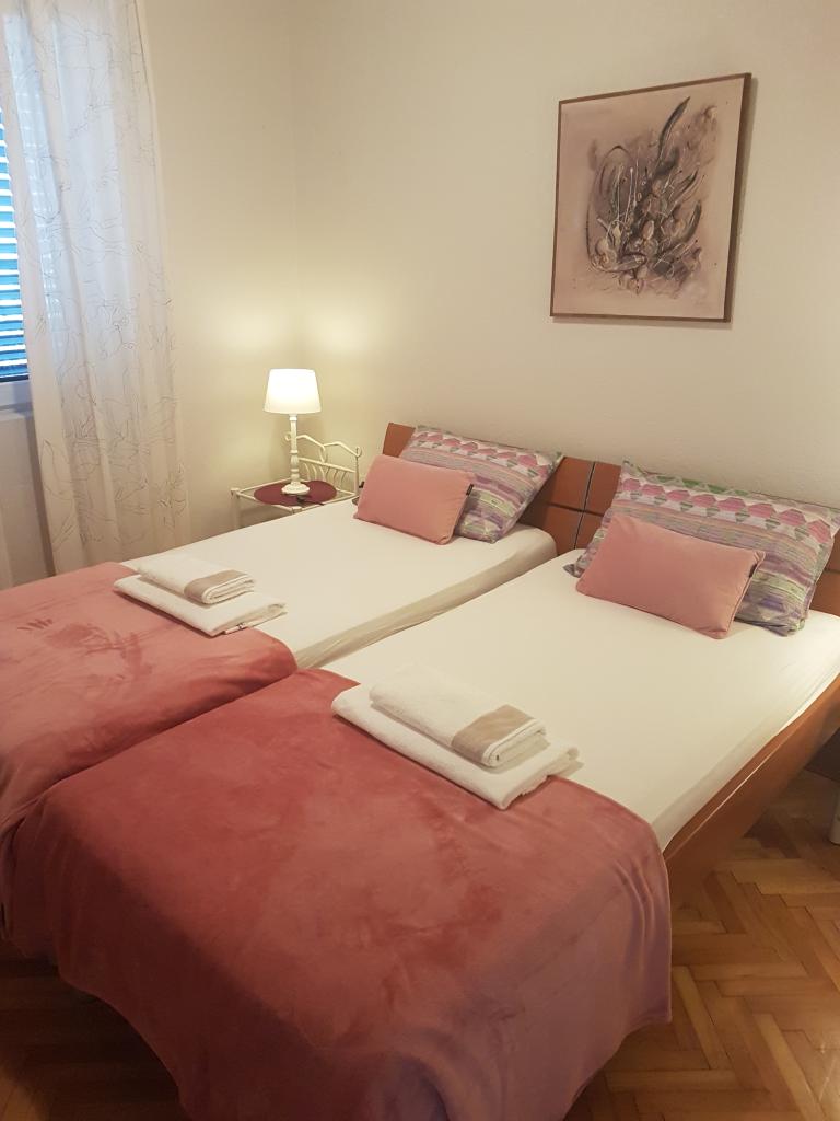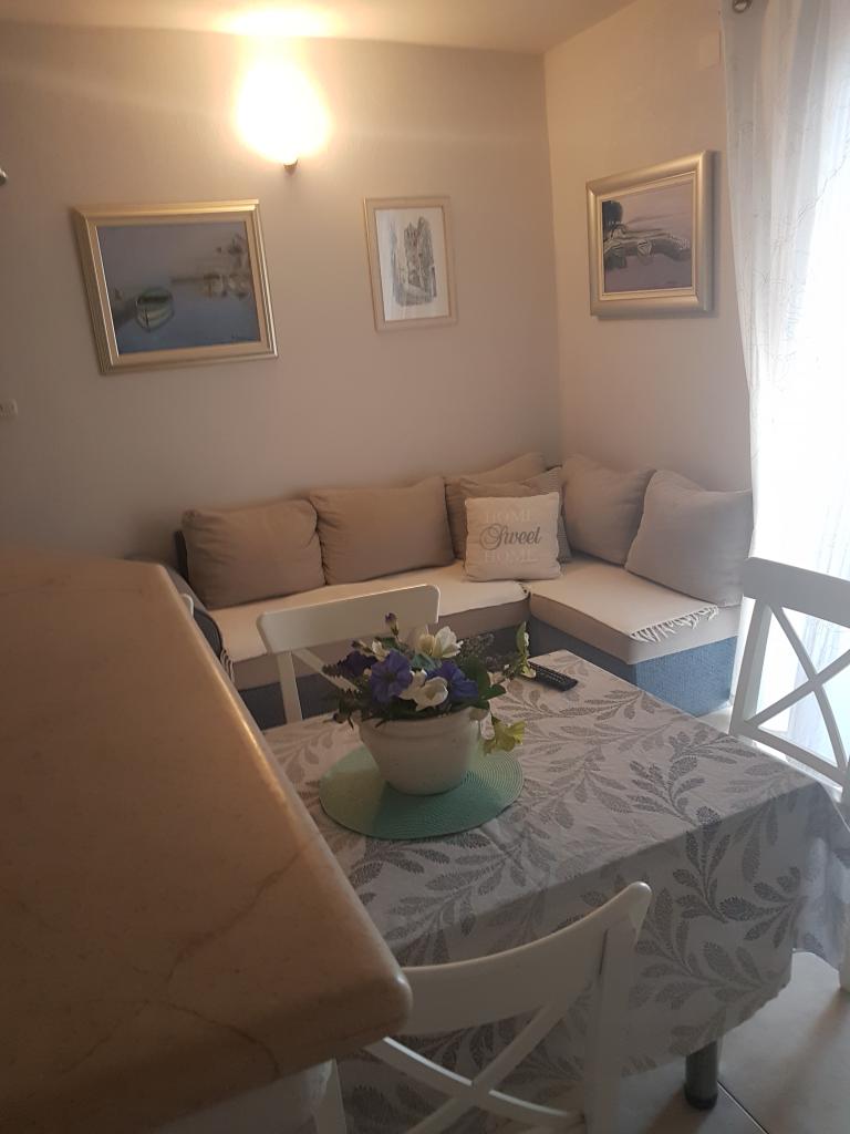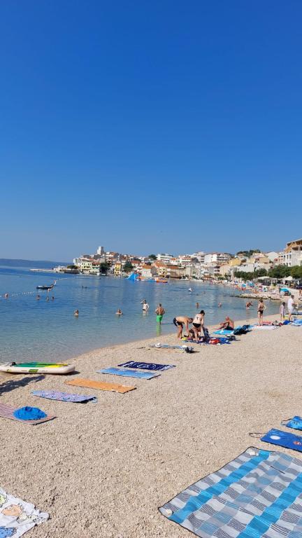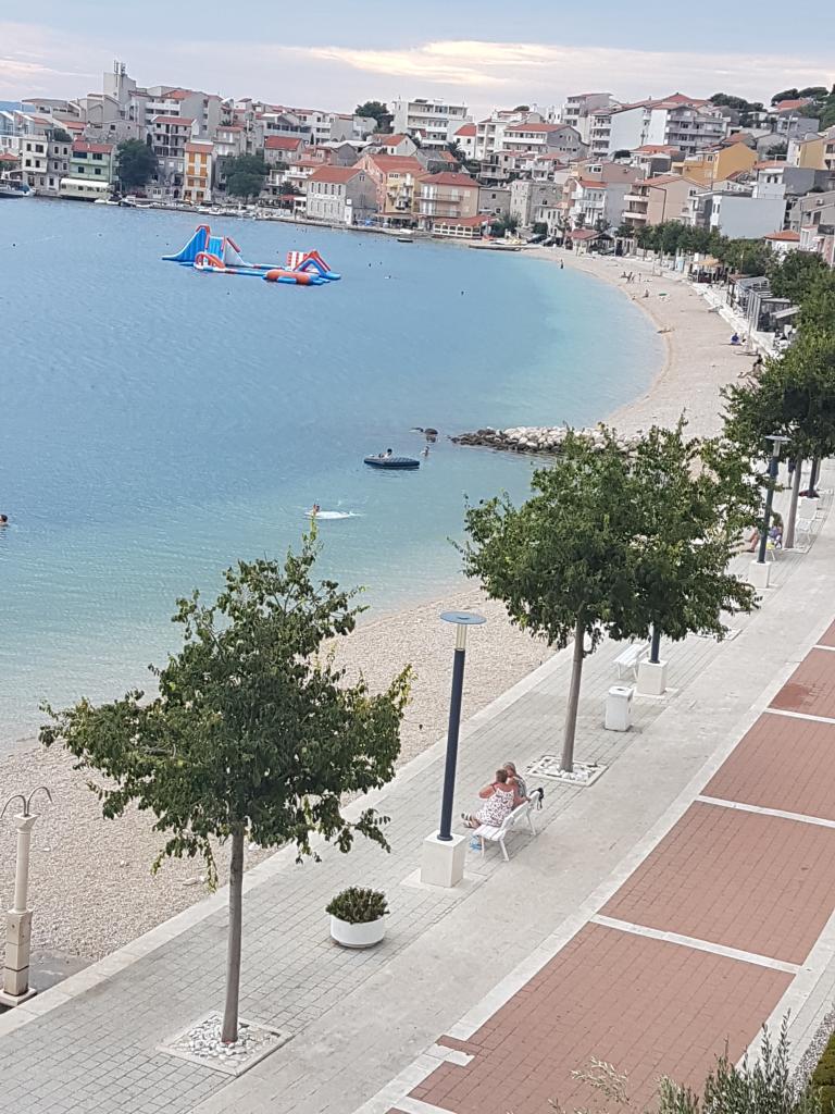 Dům se nachází přímo u pláže. Má 4 apartmány. Kapacita je 18 lůžek. Každý apartmán má velkou terasu s krásným výhledem na celé město, Pag a západ slunce.