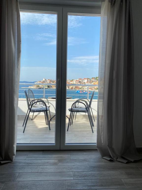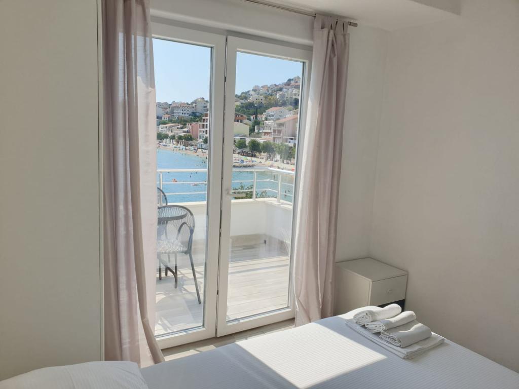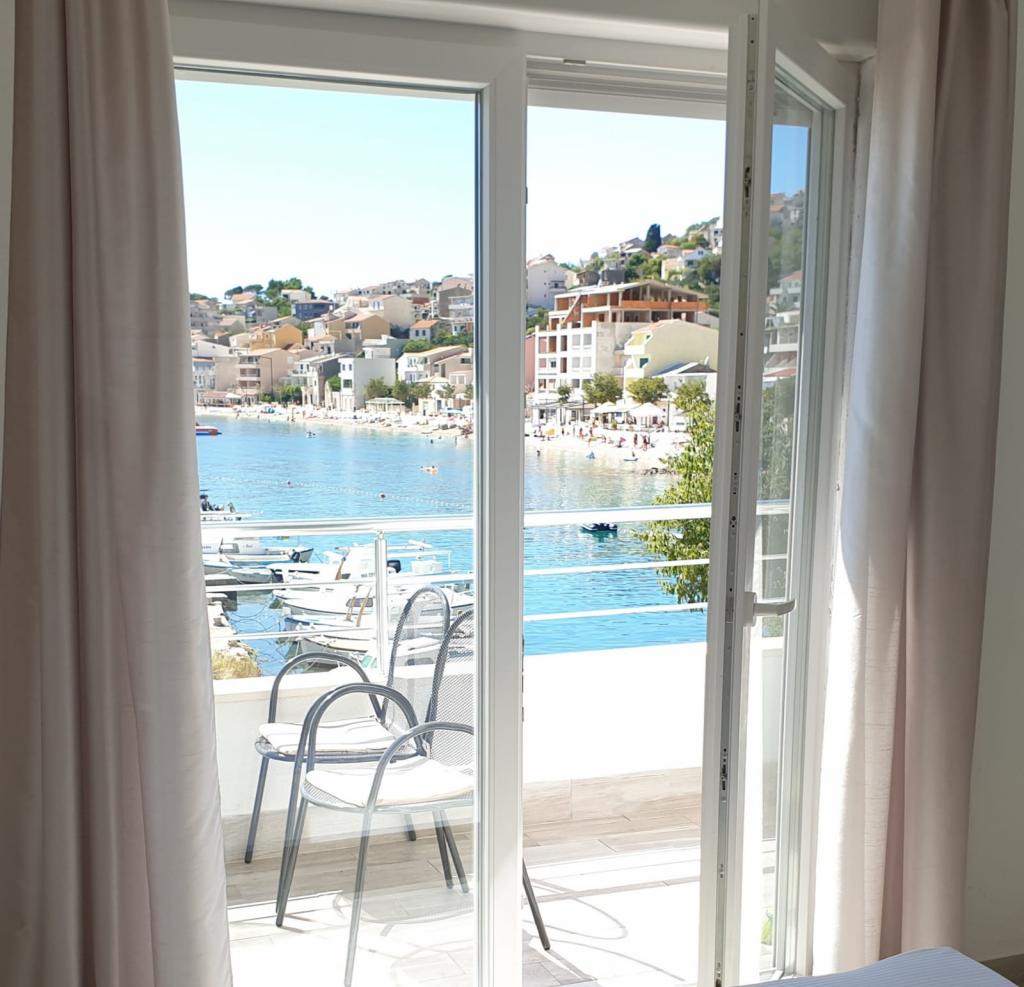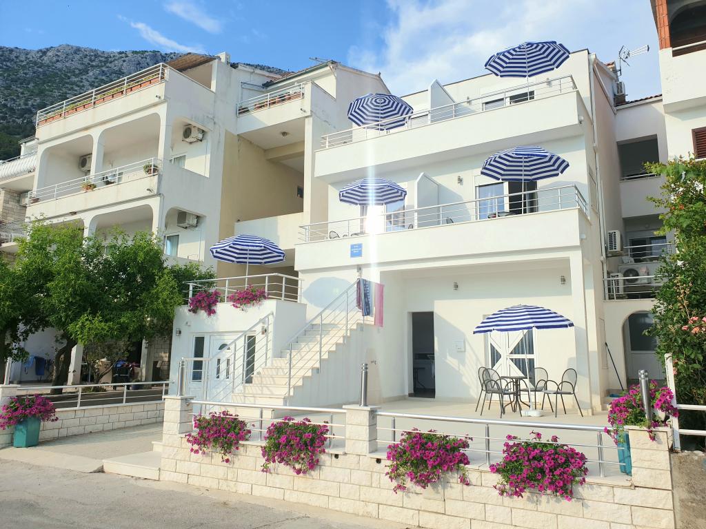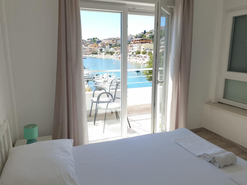 Apartmány se nacházejí v první řadě k moři, podél promenády, pláže. Balkon nabízí krásný výhled na pláž a celé Igrane.
