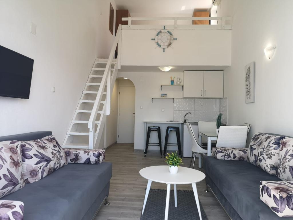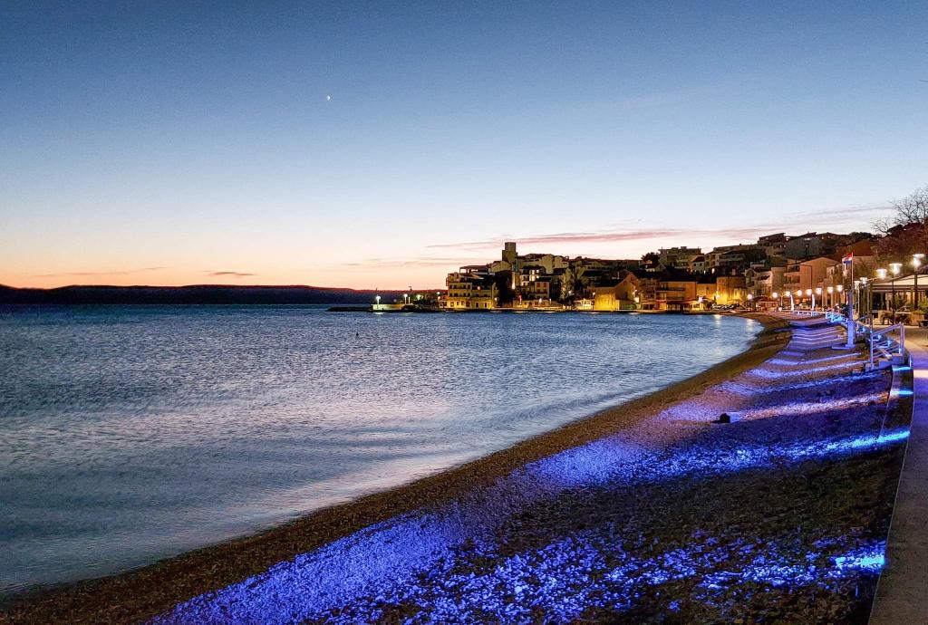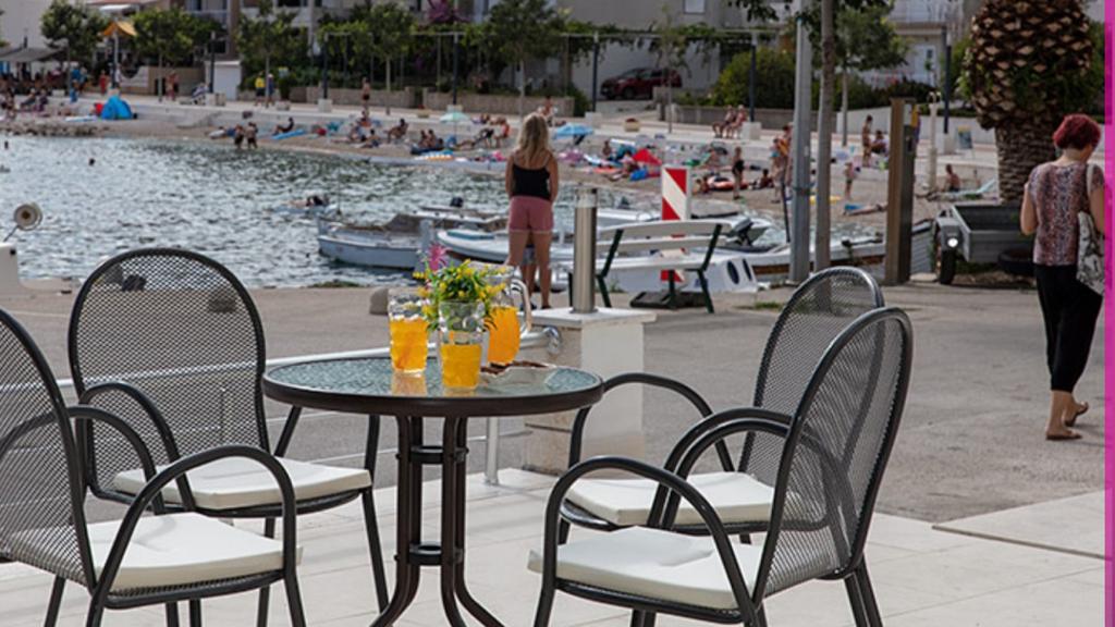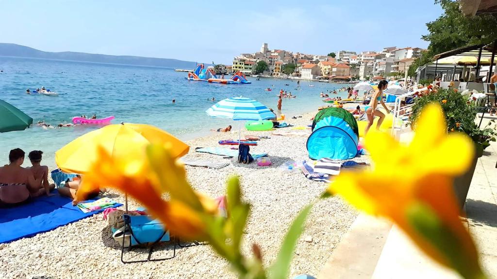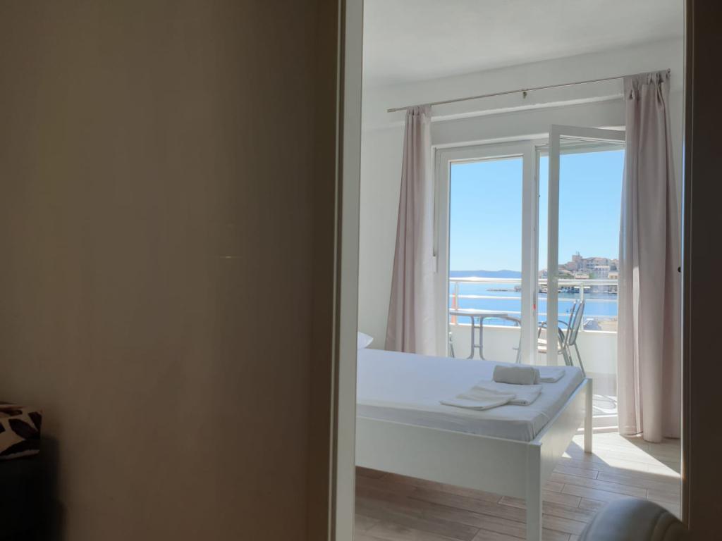 Apartmány se nacházejí v první řadě k moři, podél promenády, pláže. Balkon nabízí krásný výhled na pláž a celé Igrane.