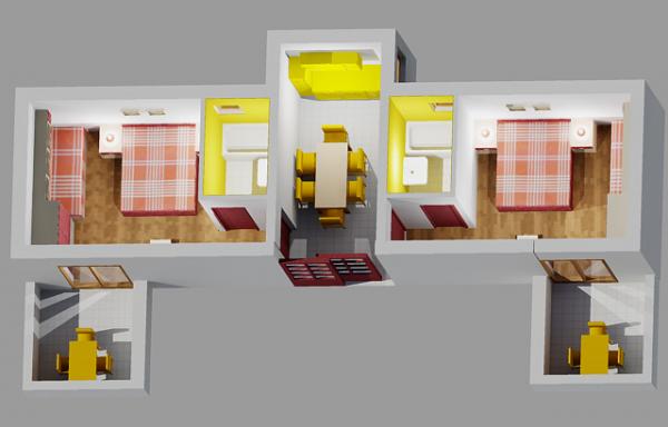 Apartmán pro dvě osoby se dvěma přistýlkami (50 m2)