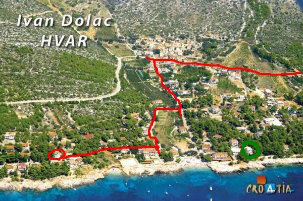 Dům se nachází v Ivan Dolac, na jižní straně ostrova Hvar. Jedná se o klidné a tiché místo s borovým lesem, vhodné pro ty, kteří hledají místo k odpočinku. Je zde mnoho oblázkových pláží, tři restaurace, malý obchod a pekárna. Dům se nachází 50 m od první pláže. Ulice je velmi klidná a provoz je jen zřídkakdy.