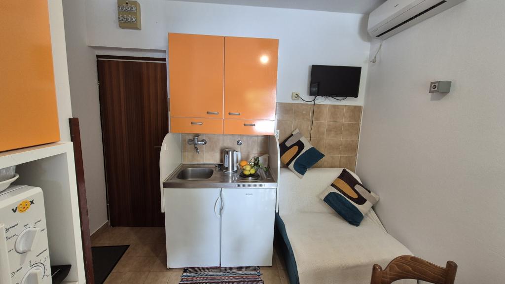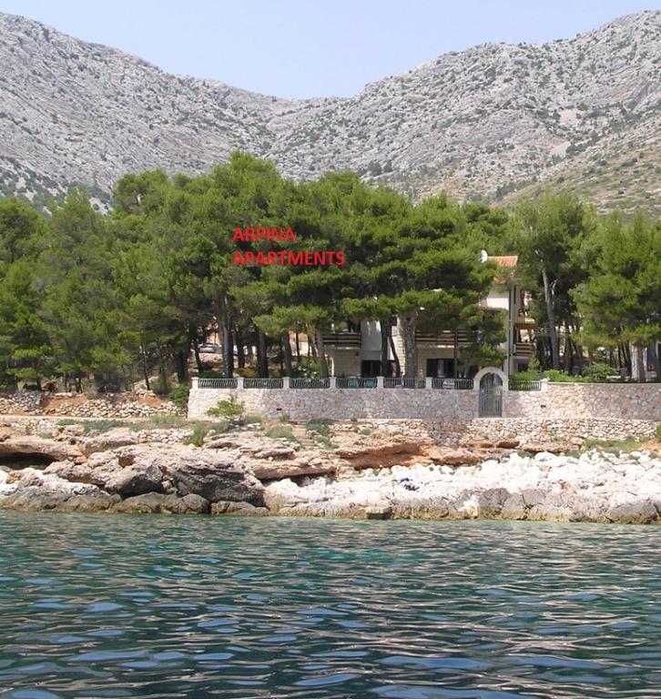 Apartmány Arpina se nacházejí v hustém borovém lese, v první řadě k moři. V bezprostřední blízkosti apartmánu se nachází několik oblázkových pláží, zatímco před domem je kamenná pláž vzdálená pouhých 10 metrů. Ubytování má upravený dvůr s lehátky a stoly pro hosty s otevřeným výhledem na moře. Hosté mají k dispozici parkování a použití grilu a na požádání je k dispozici pračka a dětská postýlka. Ubytování se skládá z celkem 5 apartmánů s celkovou kapacitou až 18 osob. Všechny apartmány mají výhled na moře, jsou klimatizované a vybavené kuchyňkou a WI-FI internet je k dispozici v celém objektu.