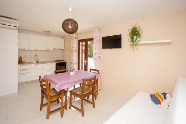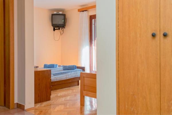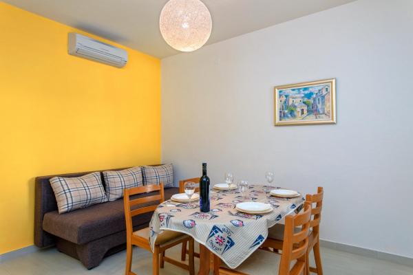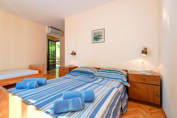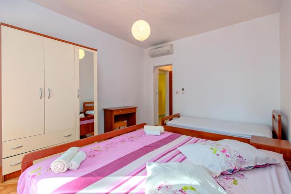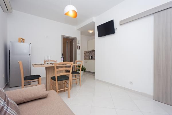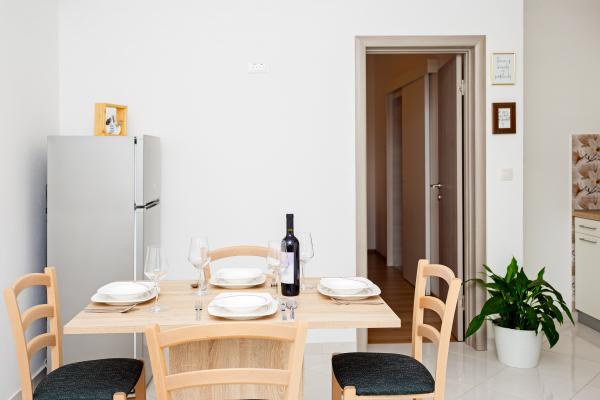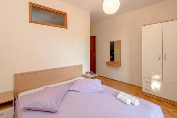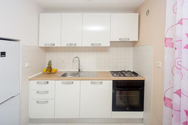 Při pobytu na 7 nocí v tomto apartmánu, který nevypadá jako byt z obrázků, jsem zažil největší nepříjemnost ve svém životě. Po návratu na hranicích se mě policista zeptal, kde se zdržuji a proč nejsem registrován??!!!! V úžasu a šoku jsem se mu snažil vysvětlit, kde jsem byl ubytován a že tam stojí, že pobytová taxa je zahrnuta v nereálně vysoké ceně za ubytování, které jsme platili! Řekl mi, že nejsem registrován a že musím zaplatit pokutu 500 HRK!!!! Nyní, co se týče samotného ubytování, jediné pozitivum (asi je samozřejmé) je, že byt je čistý. Nábytek v bytě je z minulého století! Skříně jsou přibité??!!! a nedaly se použít!!! Klimatizace funguje napůl. Jakmile jsme dorazili, upozornili jsme hostitele, že satelitní kanály nefungují a nikdo se nesnažil problém vyřešit celých 7 dní! ! Terasa je prostorná, ale od bytu jste odděleni nízkou zídkou, která nejde nadoraz, takže jste stejně jako hosté vedle nás zcela ochuzeni o intimitu. Zvláštním příběhem je velmi nepohodlná, malá a starodávná postel, která při každém pohybu tak vrzá, že nás s manželkou během všech těchto 7 nocí probudila. Celkově se cítíme podvedeni a poníženi!!!